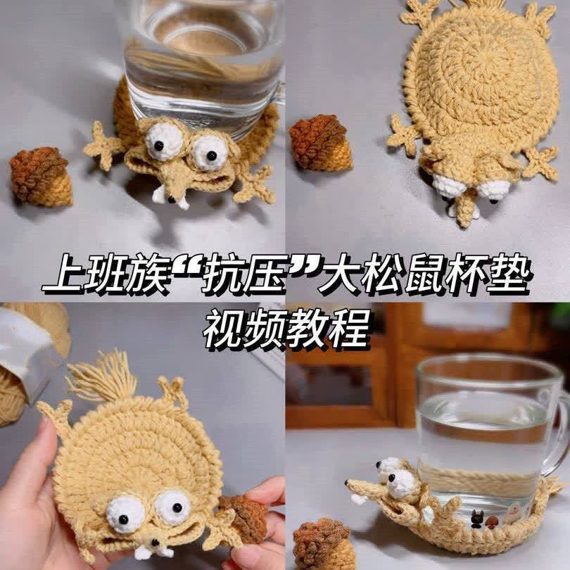 📚 班味松鼠杯垫冰河世纪仓鼠杯垫钩织毛线材料包大松鼠杯垫手工编织
