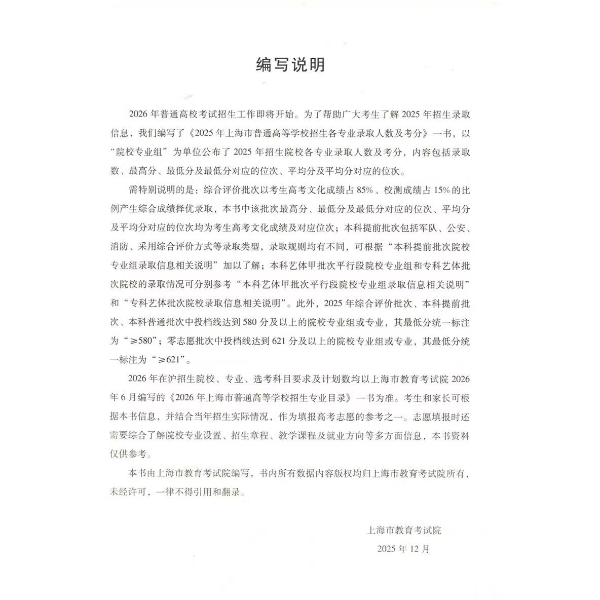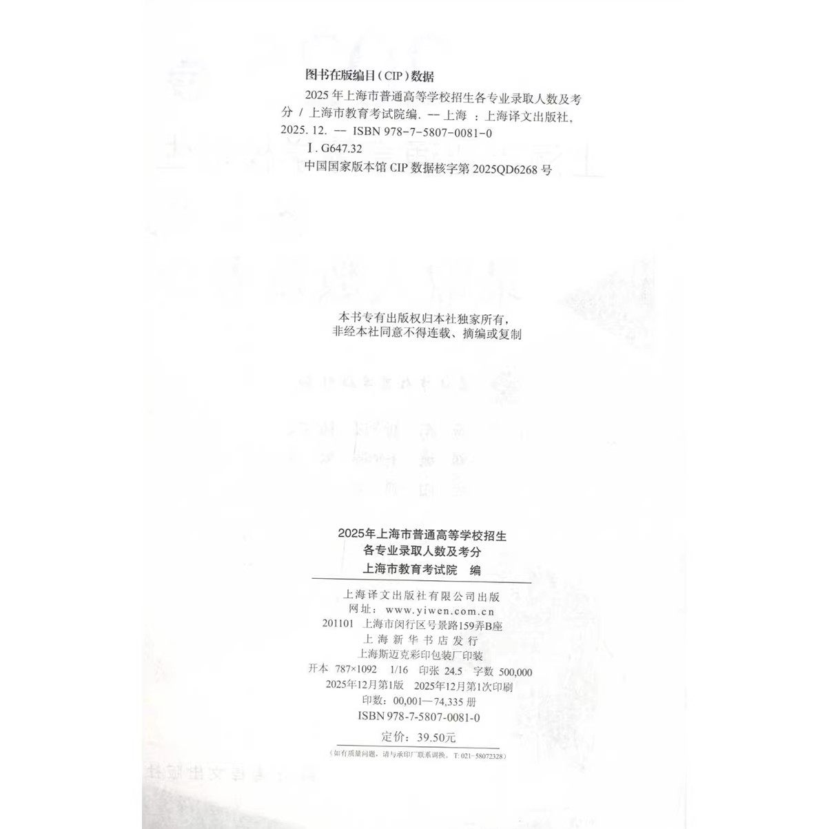 📚 正版2025年上海市普通高等学校招生 各专业录取人数及考分 2026高考备考用上海市教育考试院 上海译文出版社