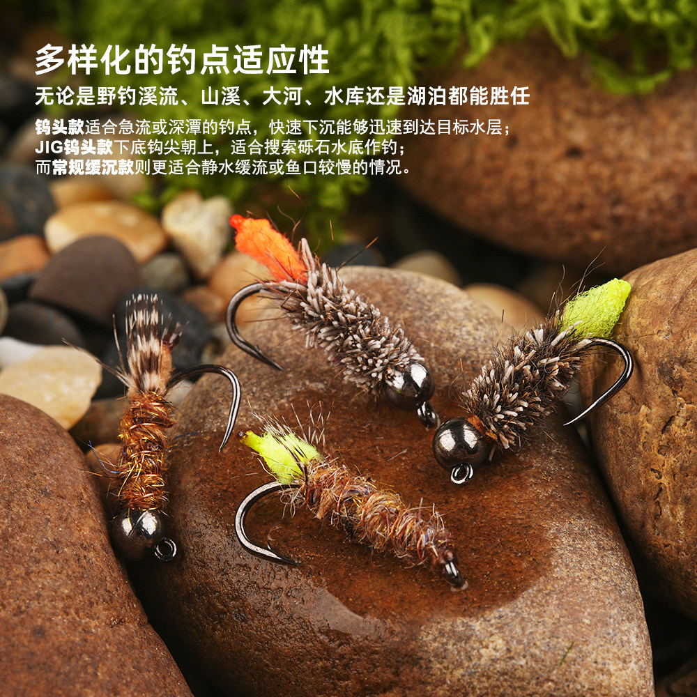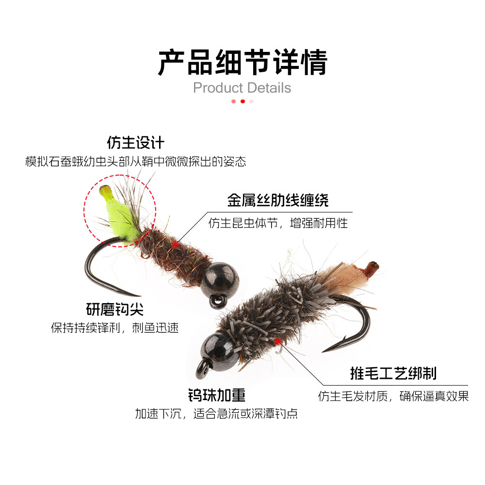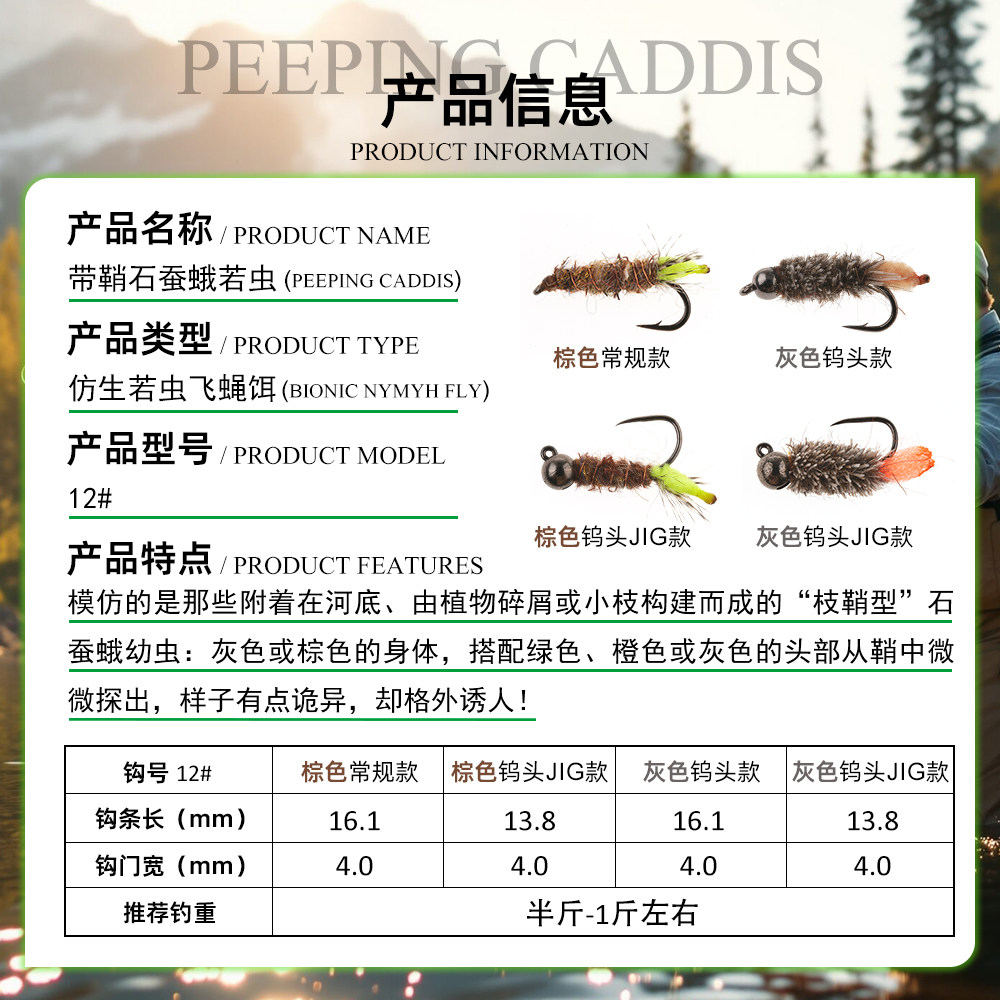 📚 带鞘石蚕蛾若虫Peeping Cddos 仿生沉水若虫鳟鱼鲈鱼假饵飞蝇LY82