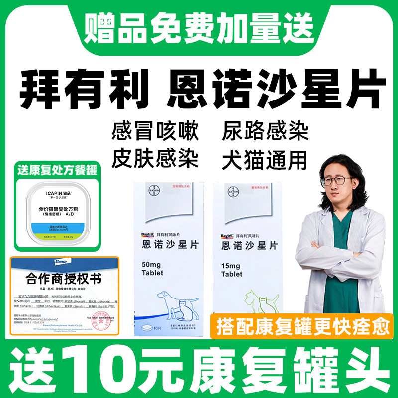 📚 拜有利恩诺沙星片猫用狗用风味片宠物专用利尿通猫咪尿闭药消炎频