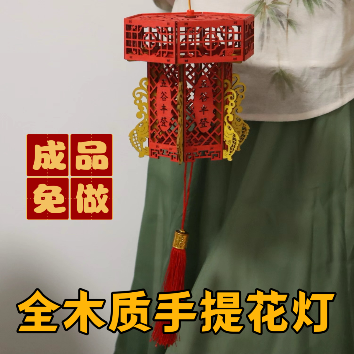 📚 花灯非遗木制手提手工diy儿童现成免做新年春节活动古风灯笼成品