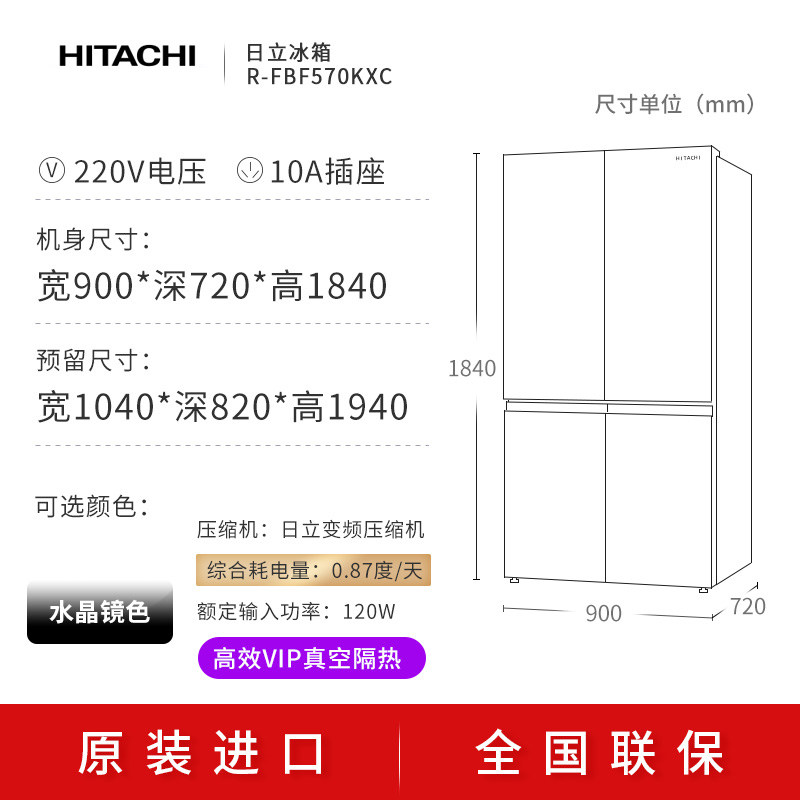 📚 Hitachi/日立冰箱573L升进口十字4门对开门 真空保鲜 R-FBF570KXC