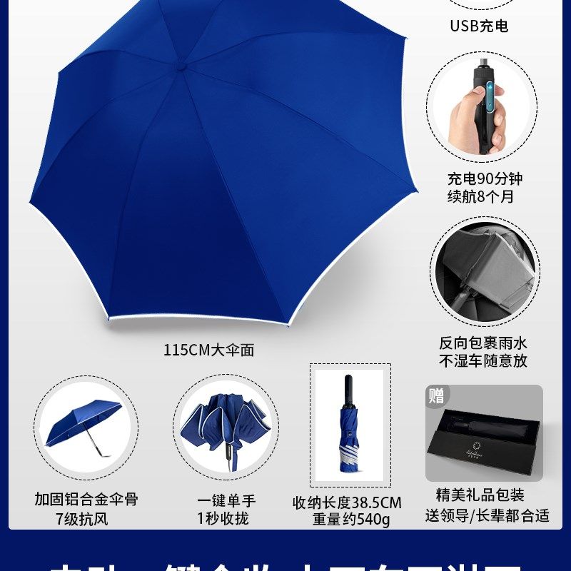 📚 魔簦电动伞黑胶遮阳伞女晴雨两用防紫外线U全自动伞夏至蓝