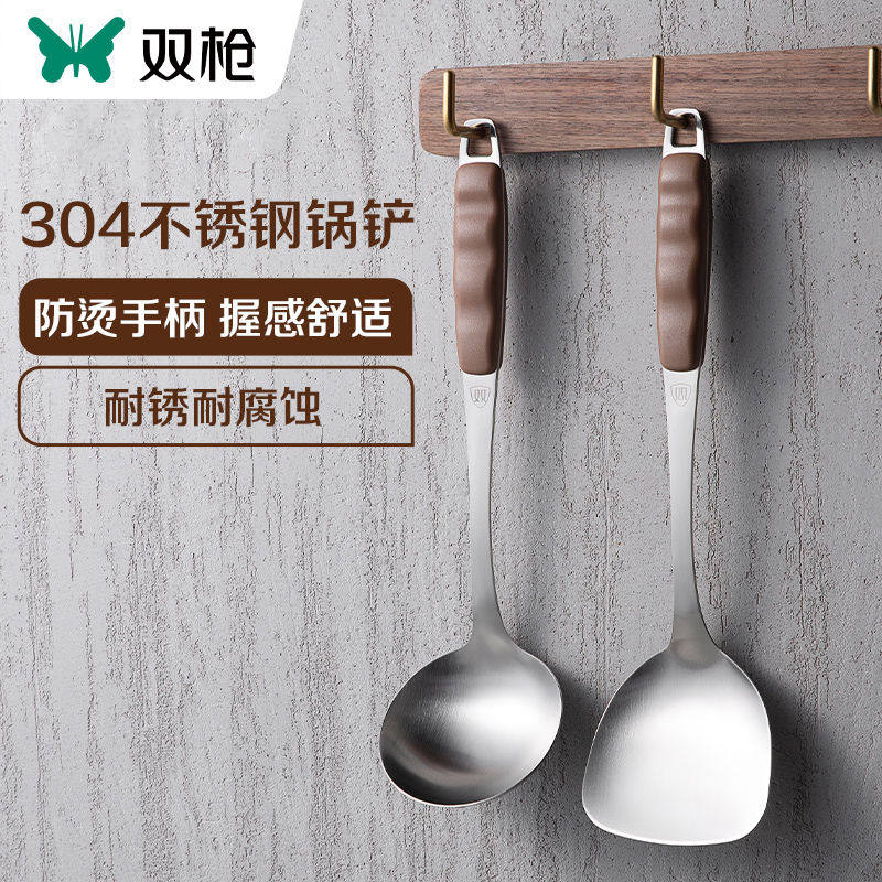 📚 双枪家用锅铲不锈钢304厨房厨具炒菜加厚铲子汤勺防烫漏勺套装
