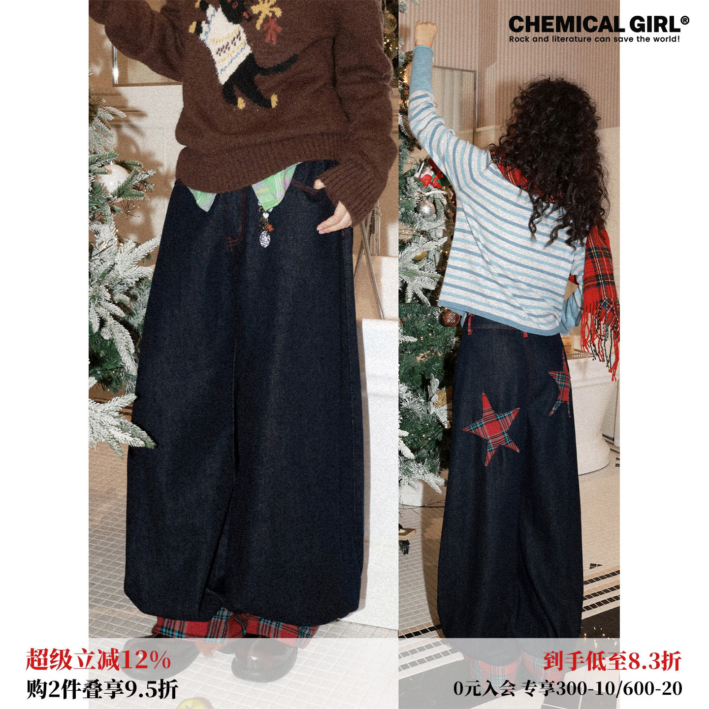 #化学少女 #X4 #失序之星 #拼接防风灯笼裤 #秋冬穿搭 #券后价229元 #复古阔腿牛仔裤