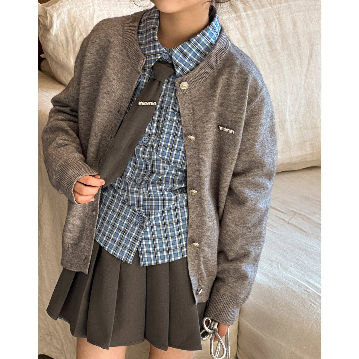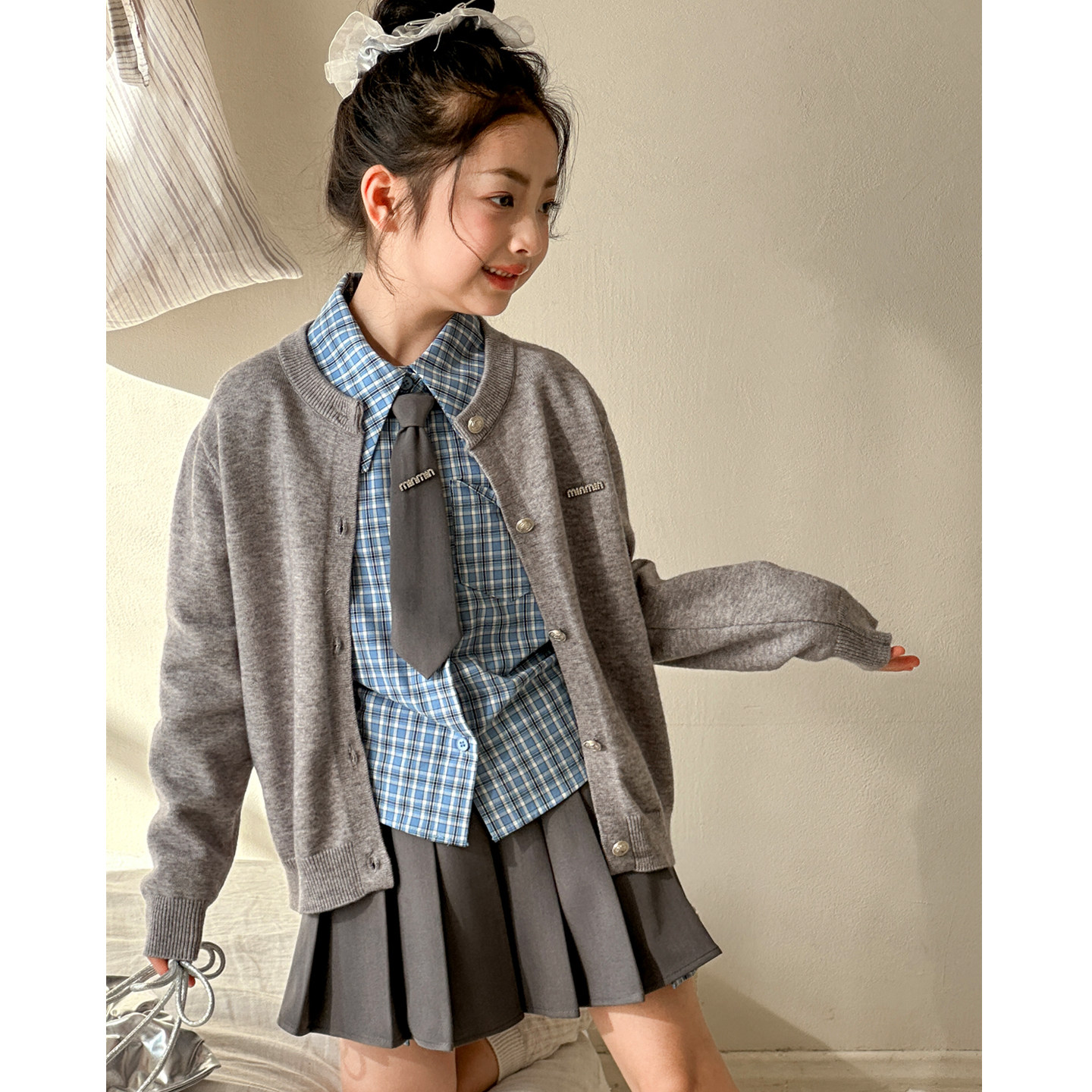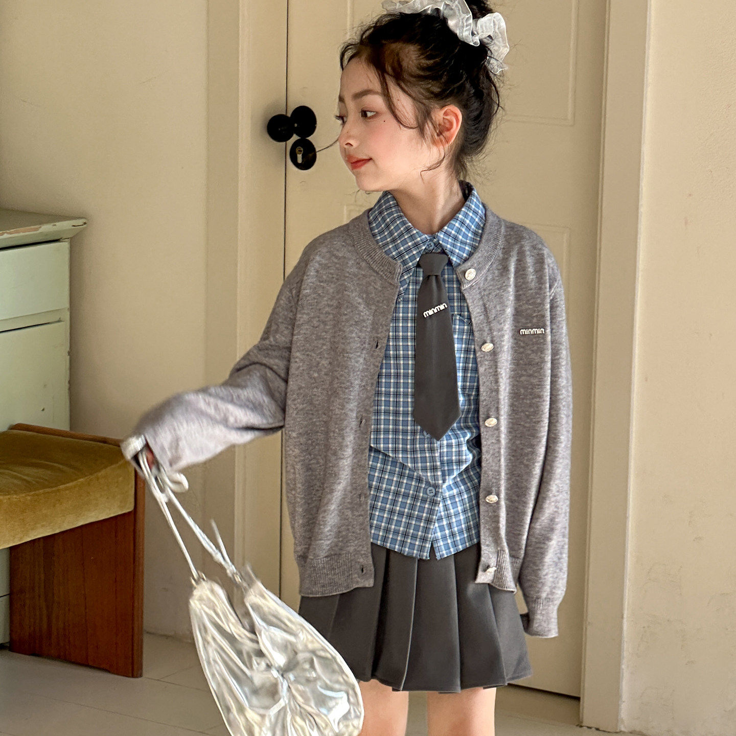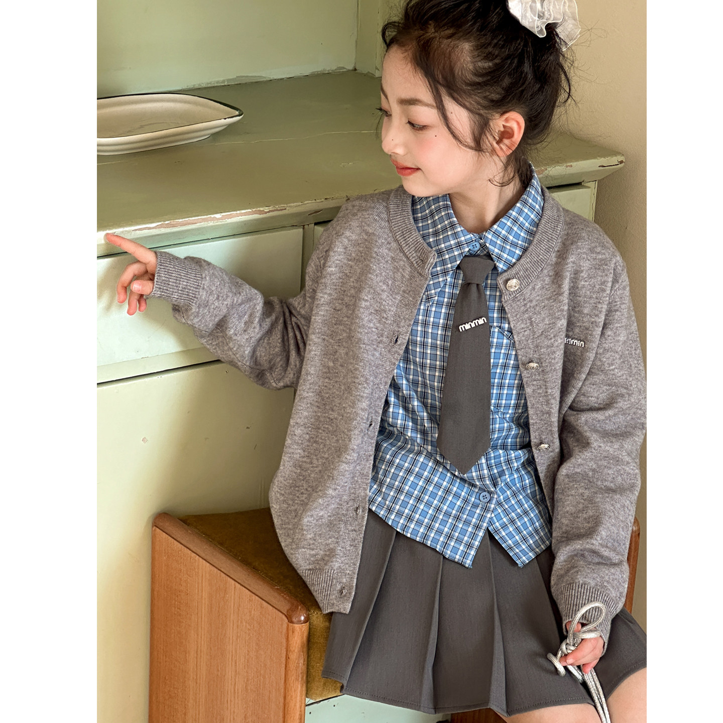 📚 女童套装春装2026新款学院风三件套初中生格子衬衫女大童针织开衫