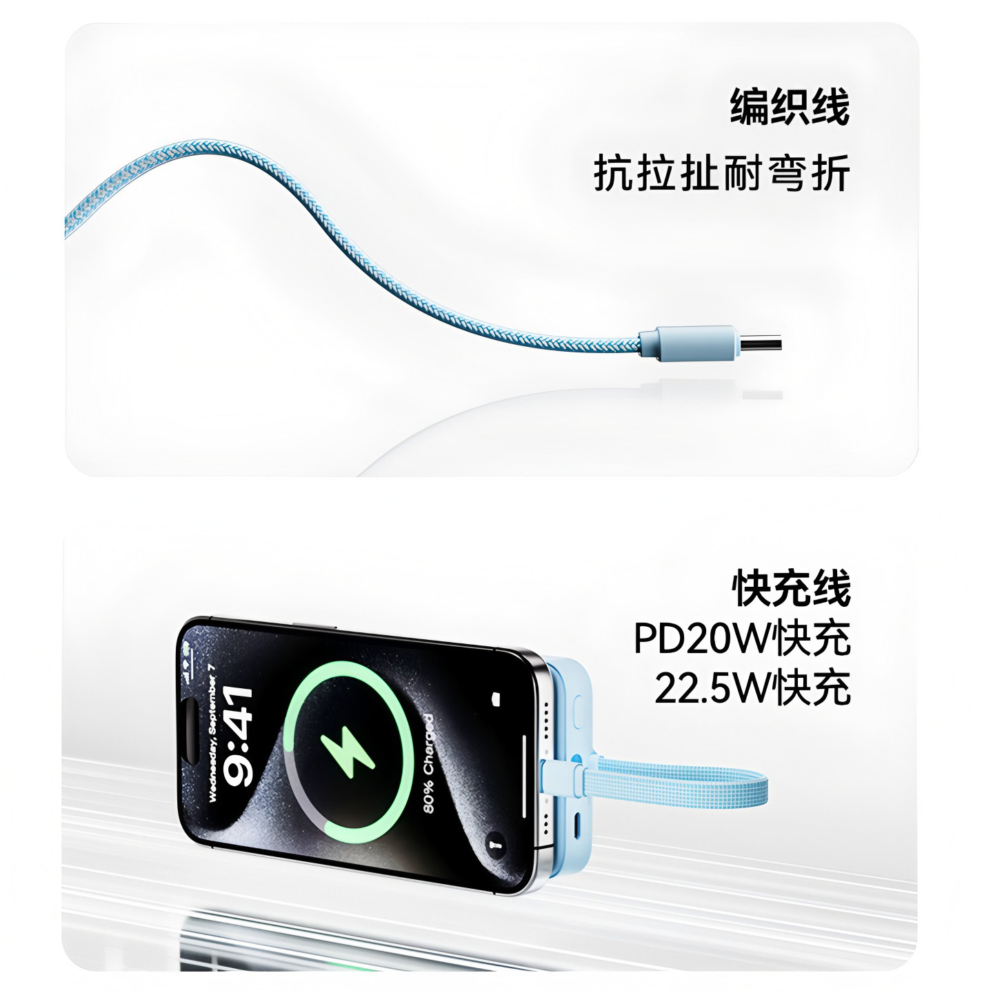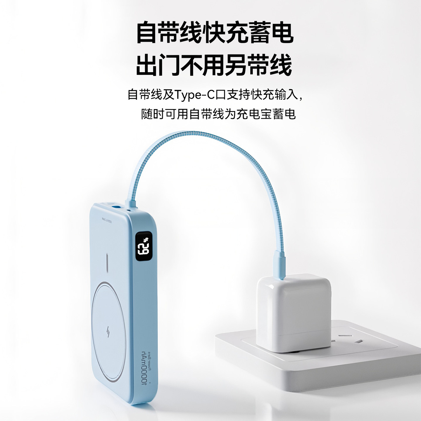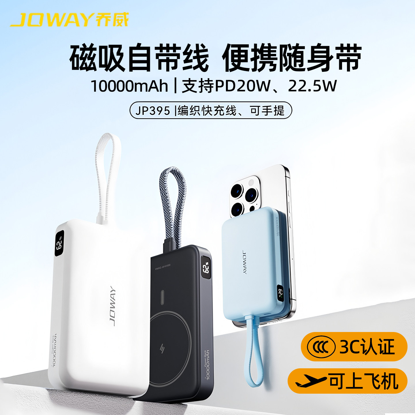 📚 【3c认证可上飞机】Joway乔威磁吸自带线充电宝10000毫安大容量快充适用苹果17/16小米华为安卓通用小巧便携