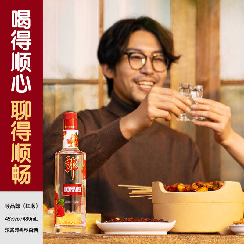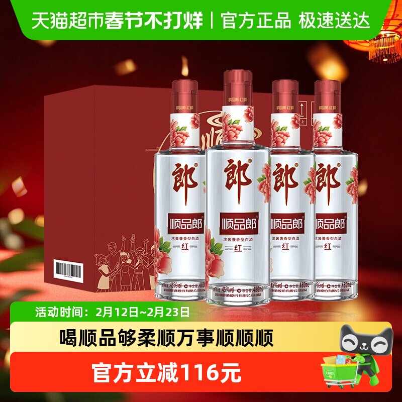 📚 郎酒顺品郎红顺兼香型白酒45度480ml*4瓶纯粮食酒聚餐自饮光瓶酒