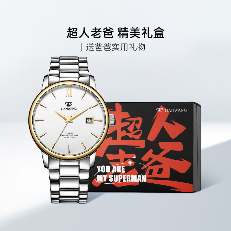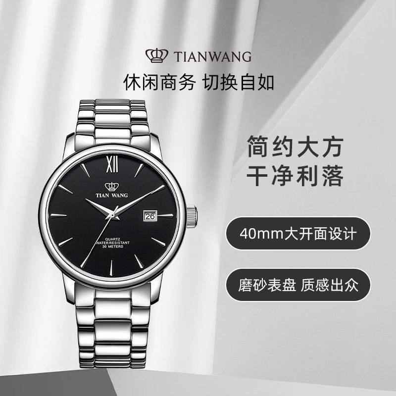 #天王表 #石英商务男士手表 #防水钢带日历腕表 #公务员考试必备好物