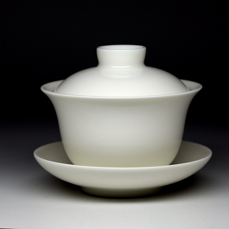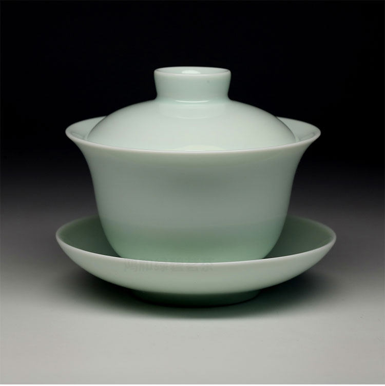 📚 台湾三希陶瓷 青白牙白三才杯 纯色盖碗 125ml S854