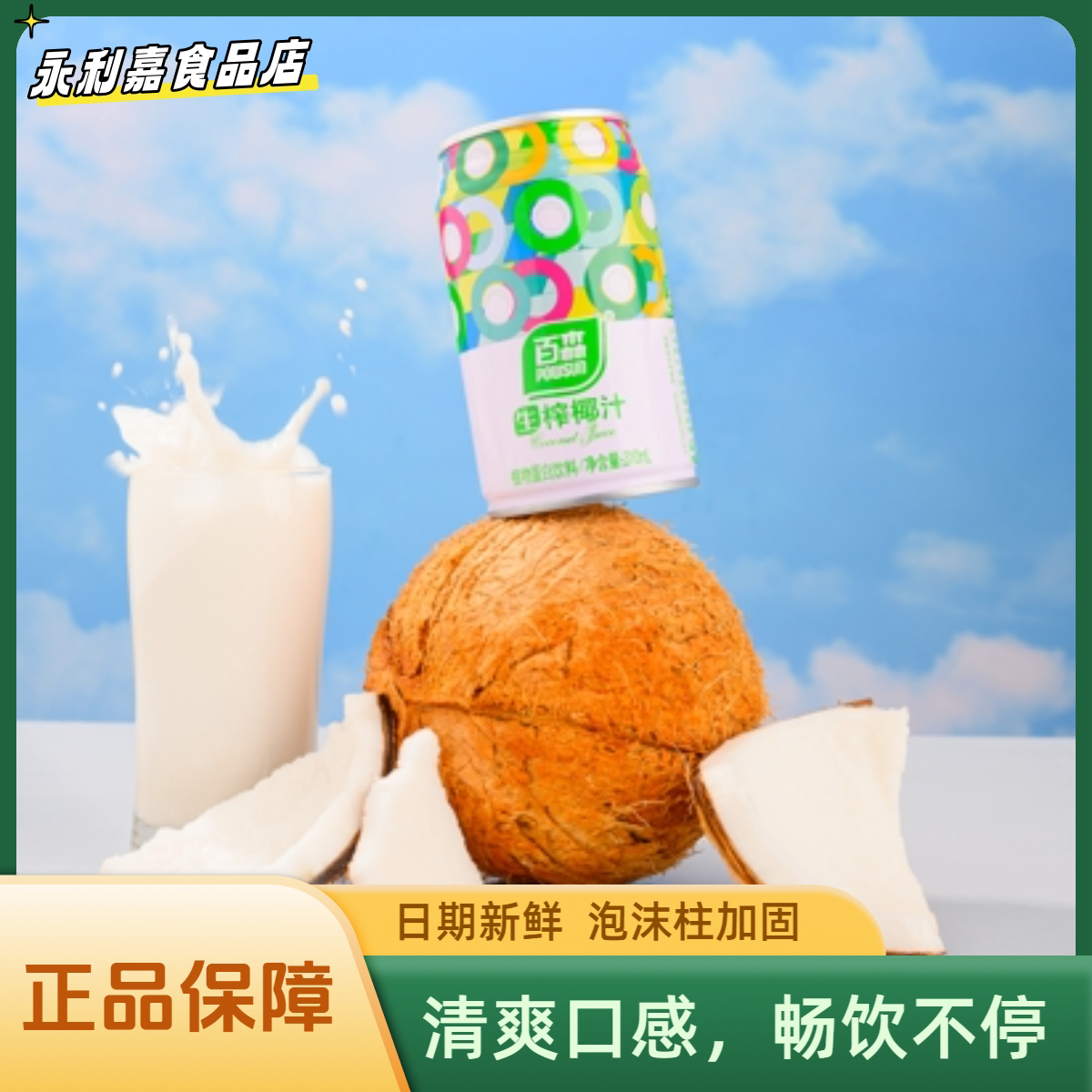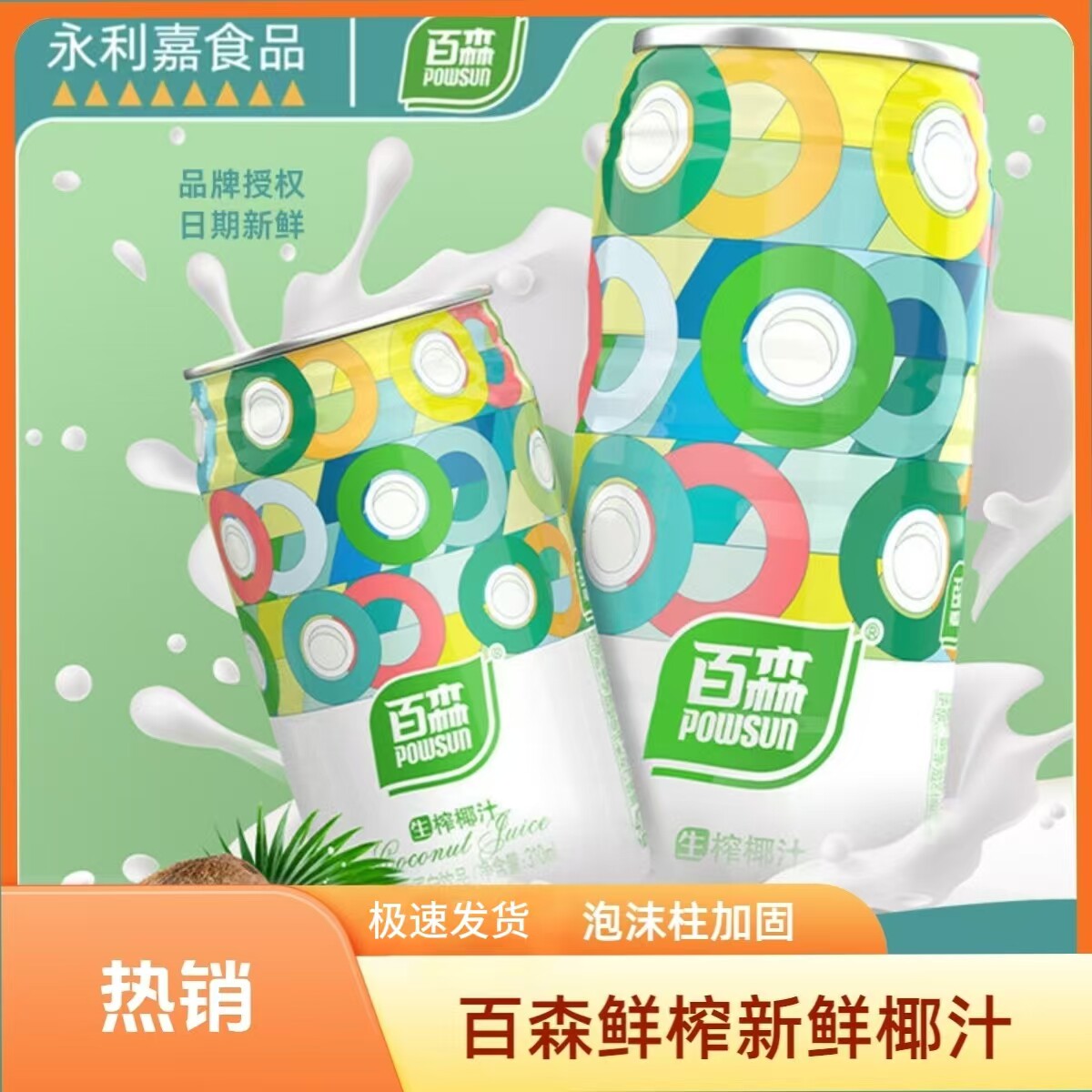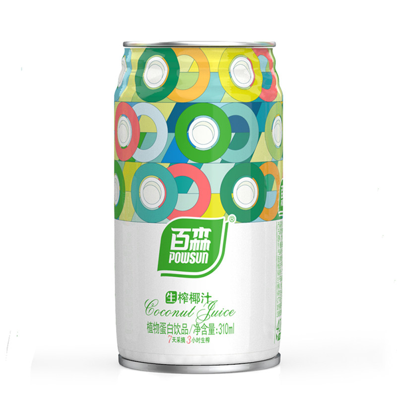 📚 送货上门正品POWSUN/百森生榨椰汁310ml浓郁植物蛋白饮品罐装饮料