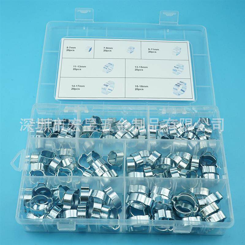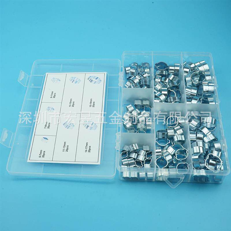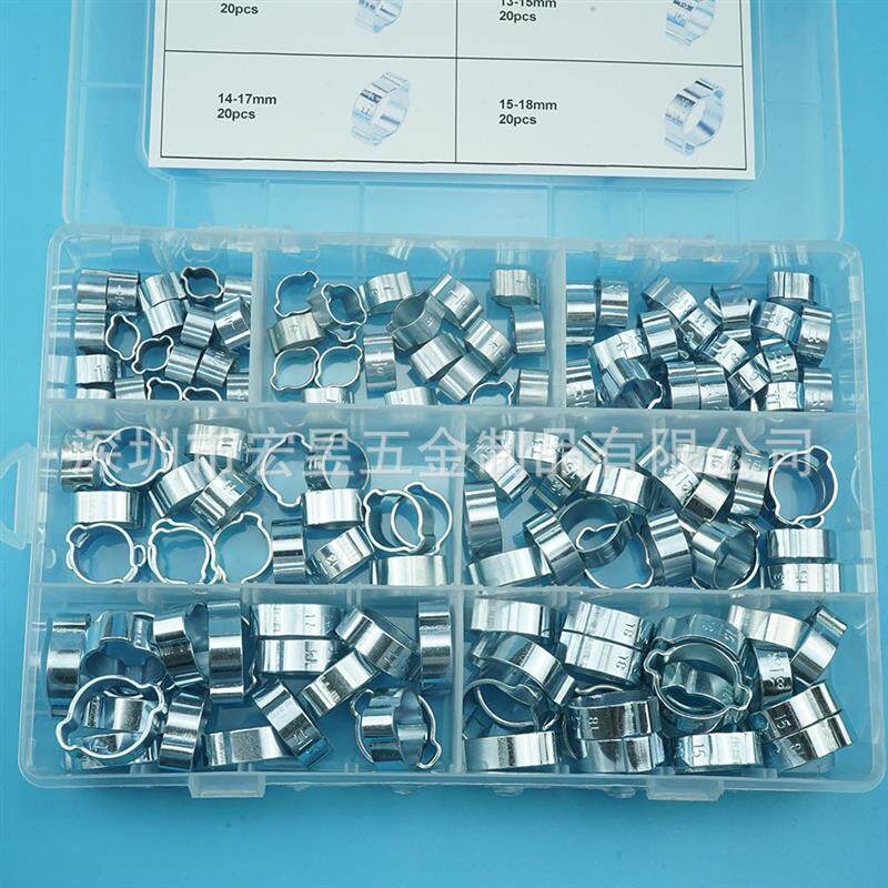 📚 140pcs 镀锌钢双耳卡箍 通用卡箍圈多规格组合套装盒装