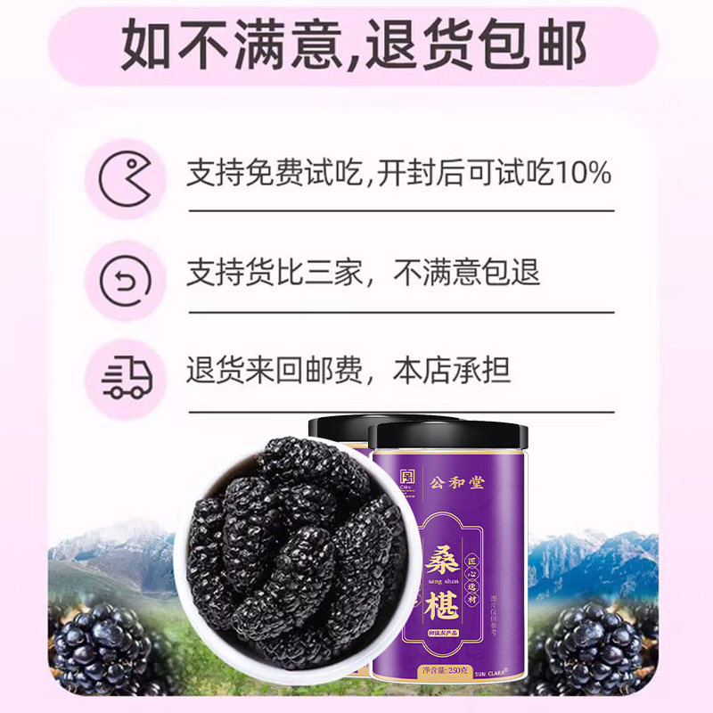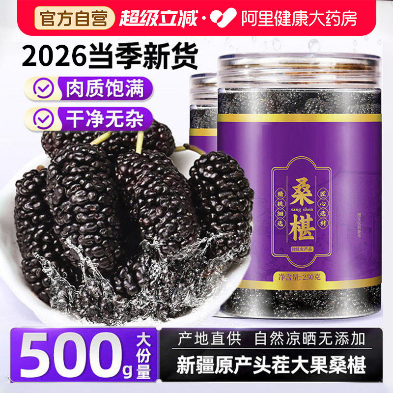 📚 黑桑葚干黑桑椹干果500g特级新疆桑葚新鲜官方旗舰店搭北京同仁堂