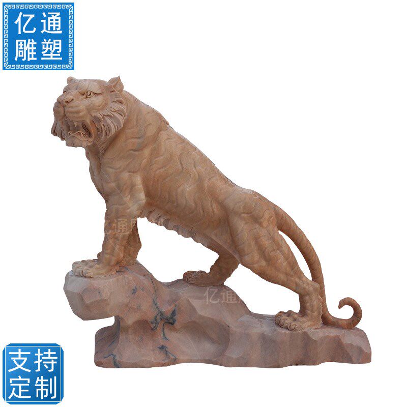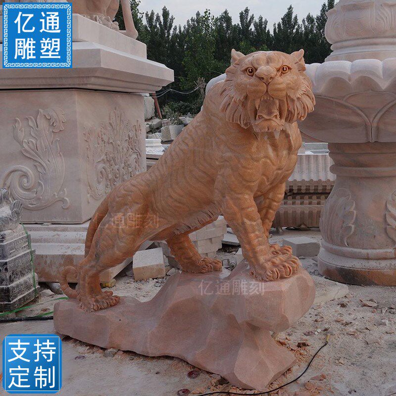 📚 石雕老虎家原石雕刻生肖虎石虎中式庭院大门口看门石头摆件晚霞红