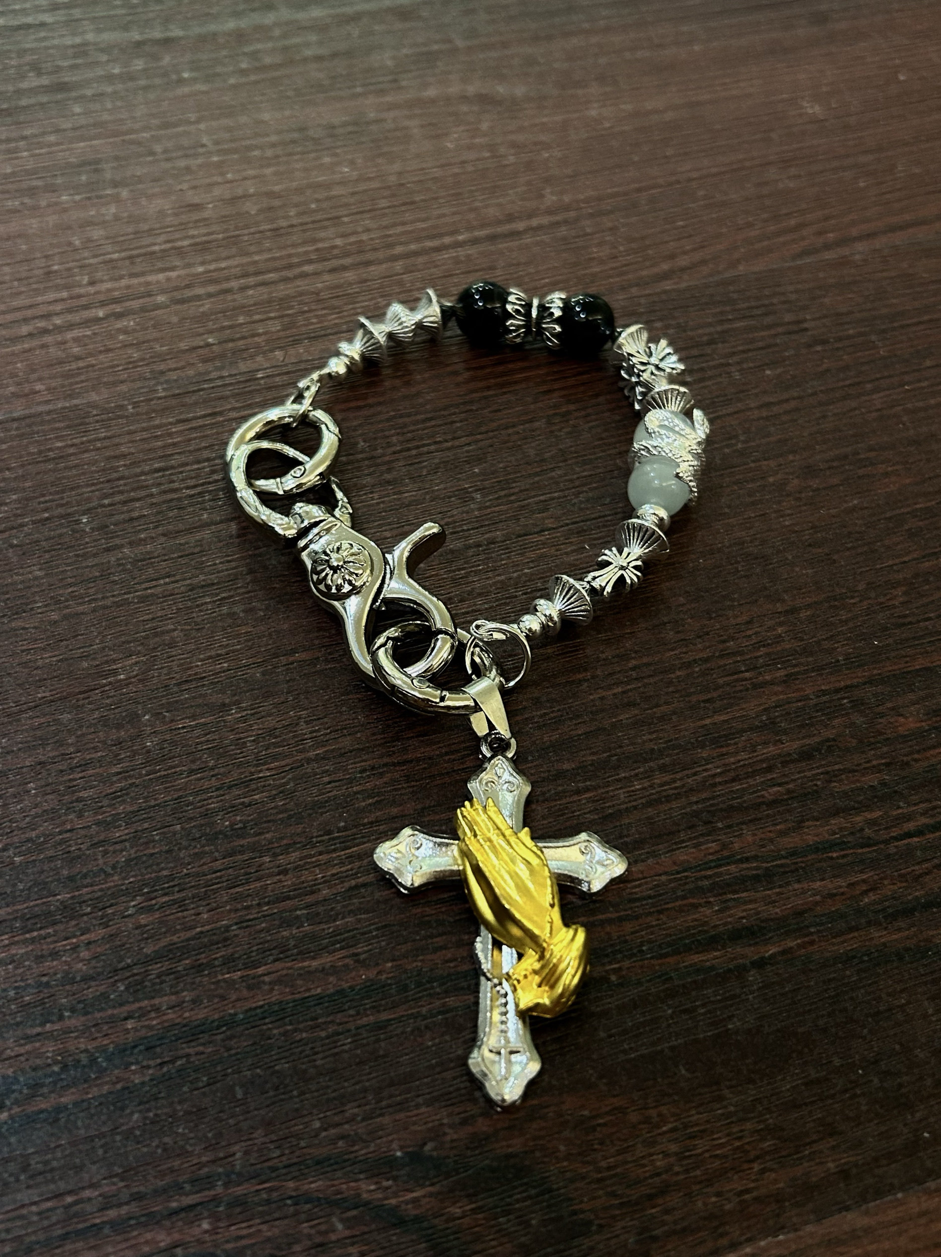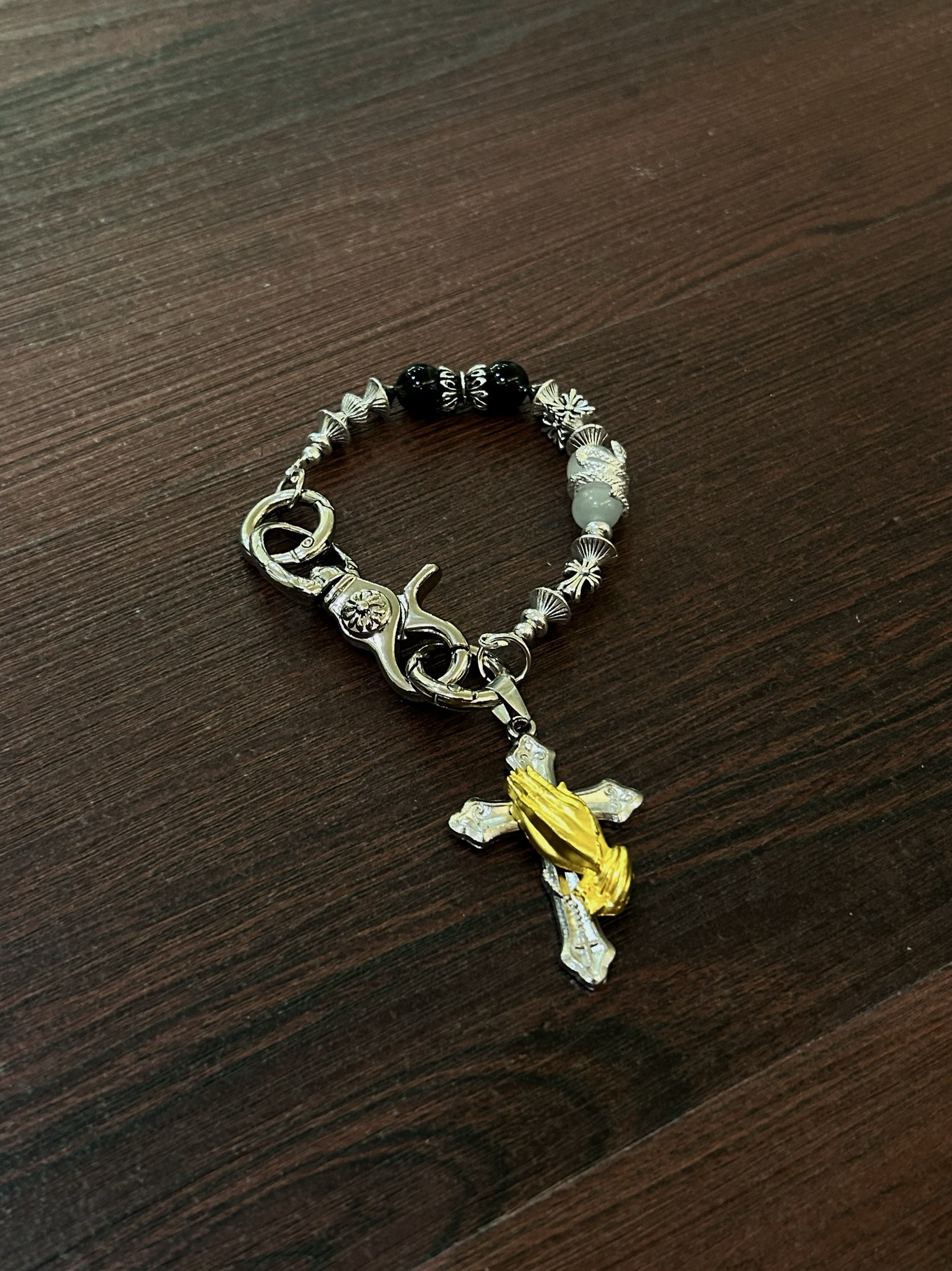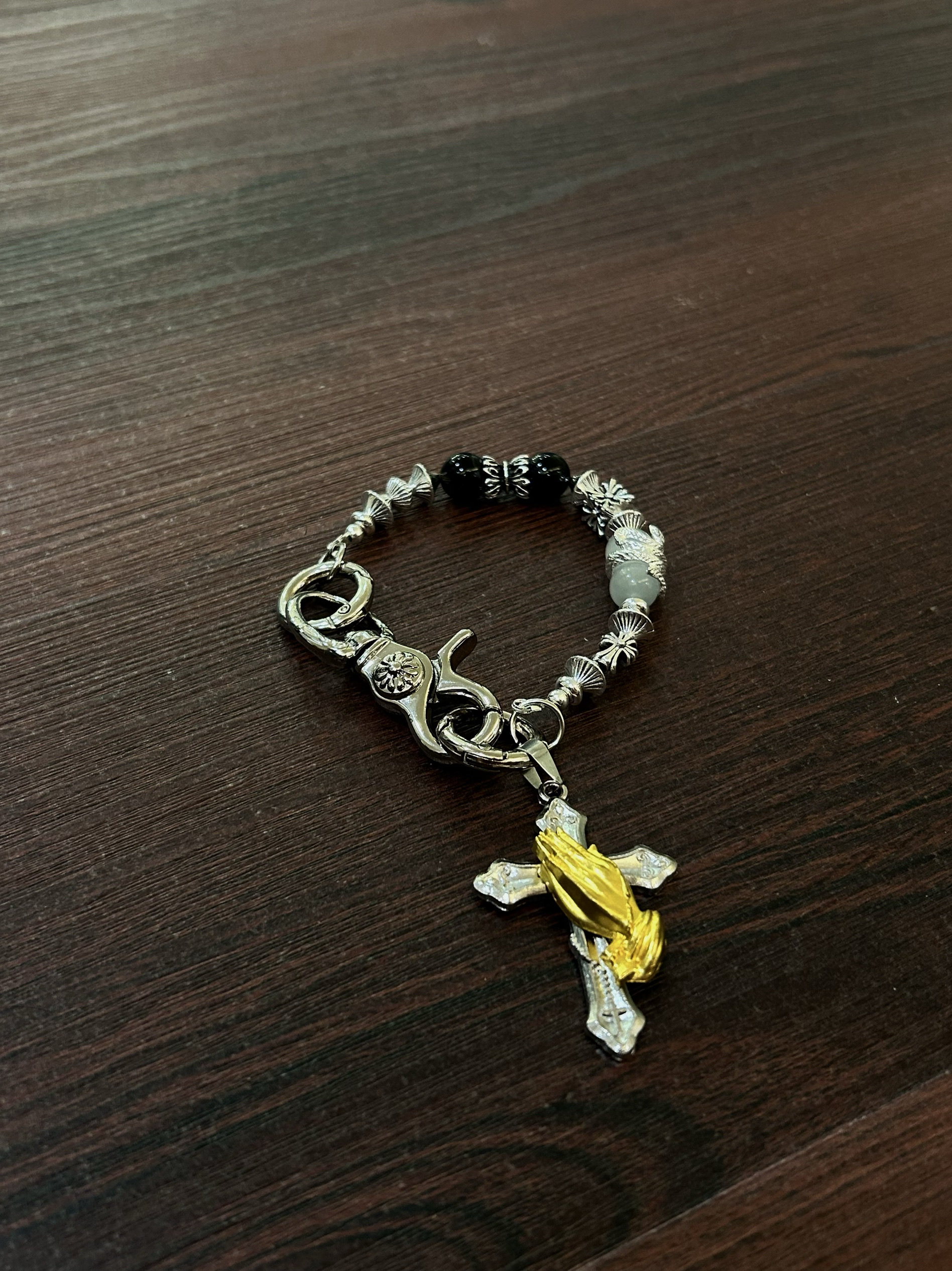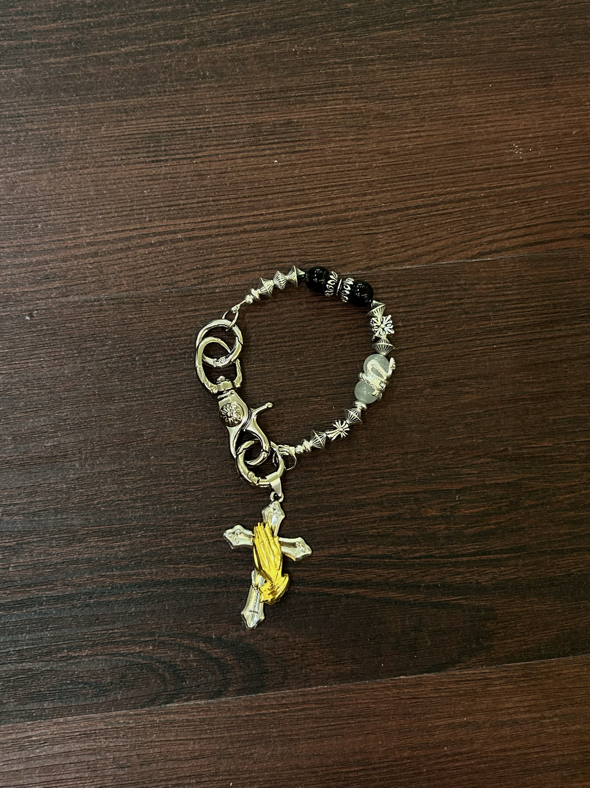 📚 小心袖口"Vintage十字架祈祷之手原创小众黑白挂饰配饰包包挂件