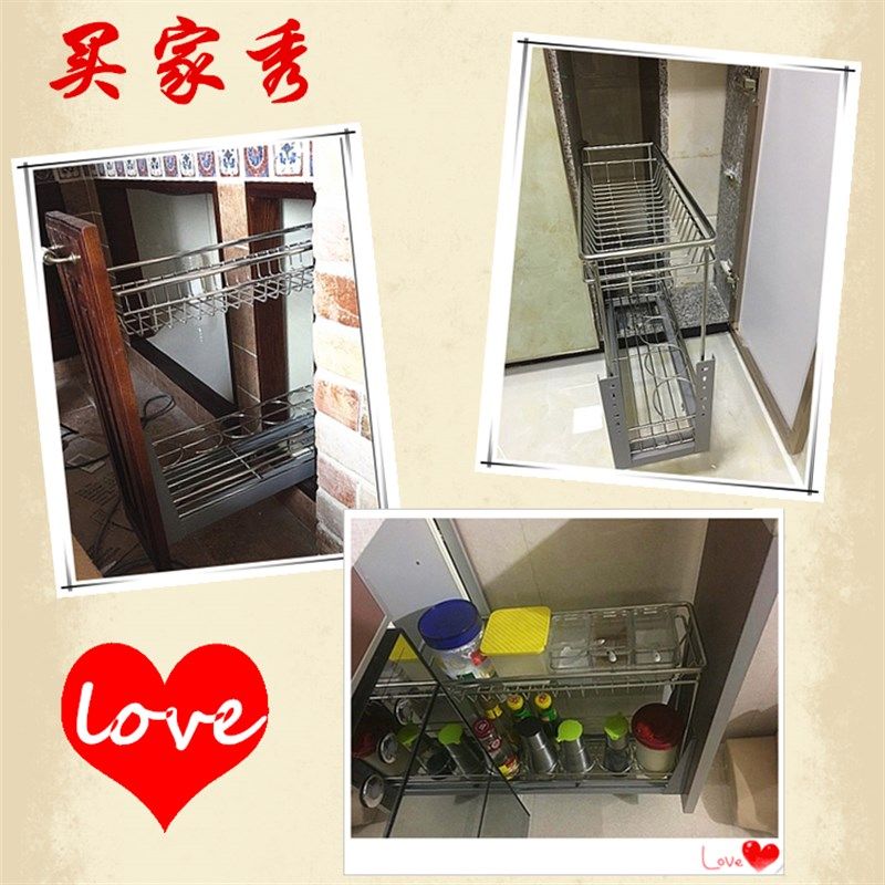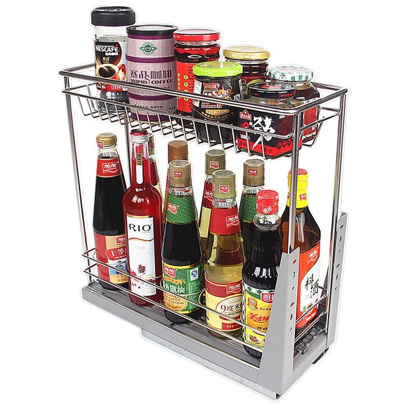 📚 加粗实心不锈钢调味拉篮200柜体小厨房双层置物收纳架橱柜阻尼篮