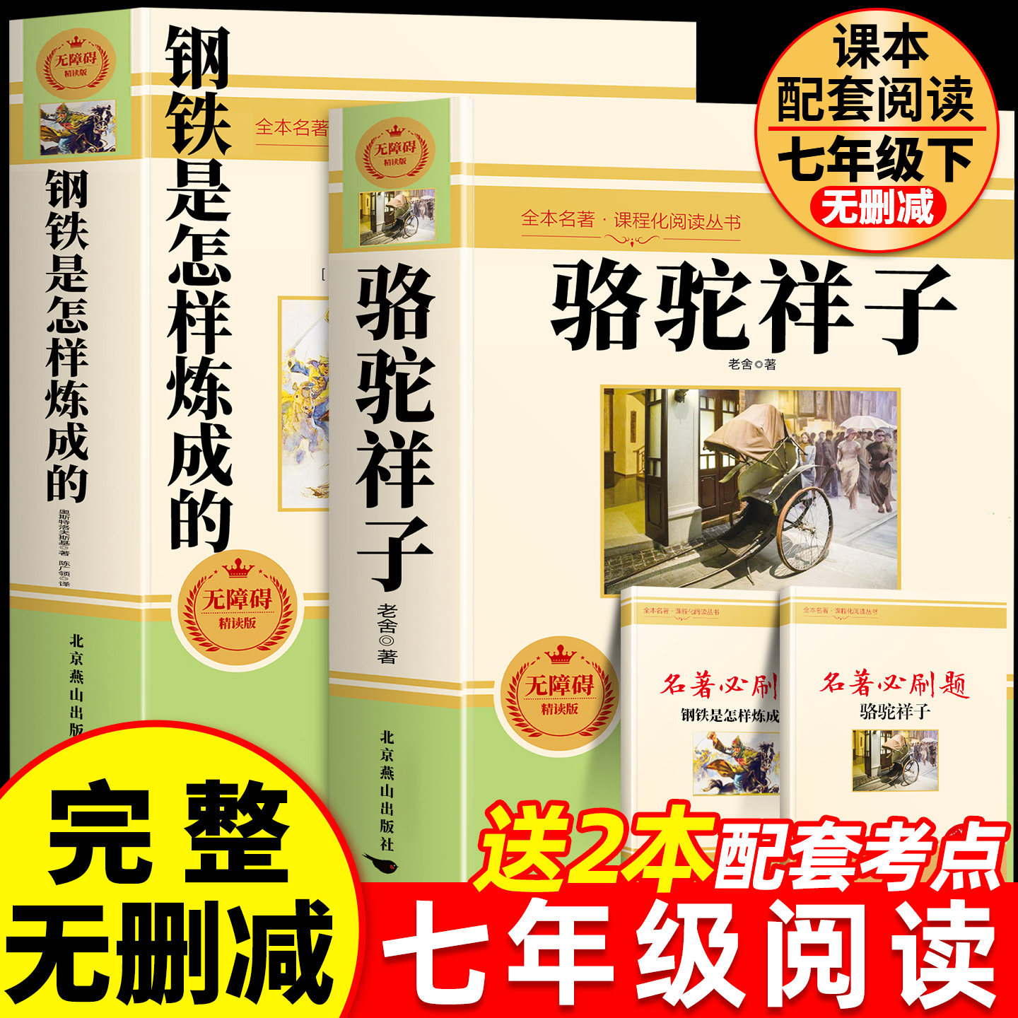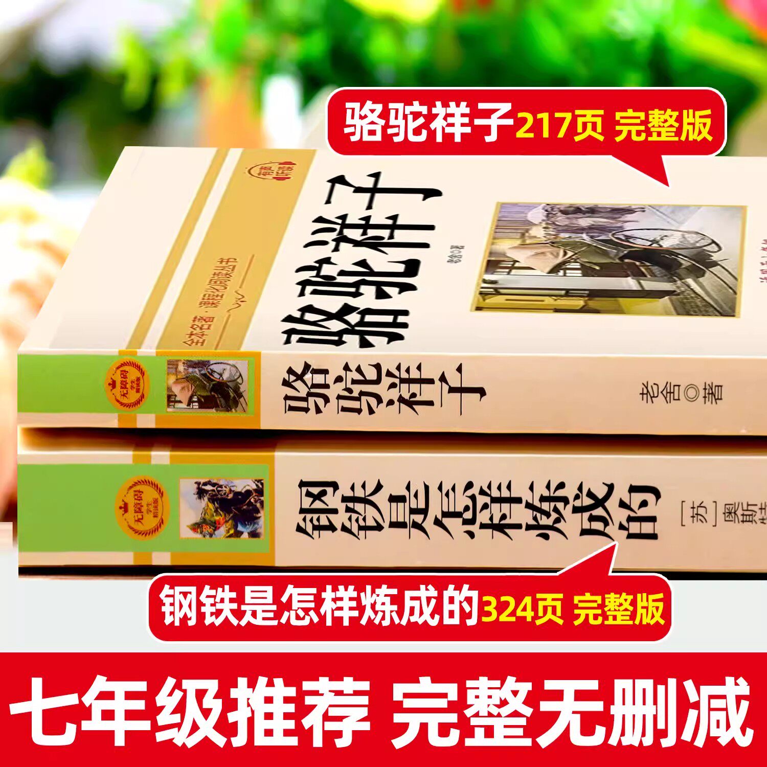 📚 【正版原著】骆驼祥子和钢铁是怎样炼成的七年级下册必读正版书朝花夕拾完整版七下名著配套人教版语文书目怎么初一课外阅读书籍