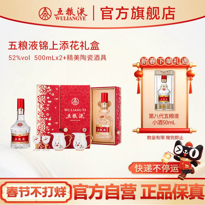 📚 【快递不停运】第八代五粮液普五锦上添花礼盒52度500mL*2瓶官方