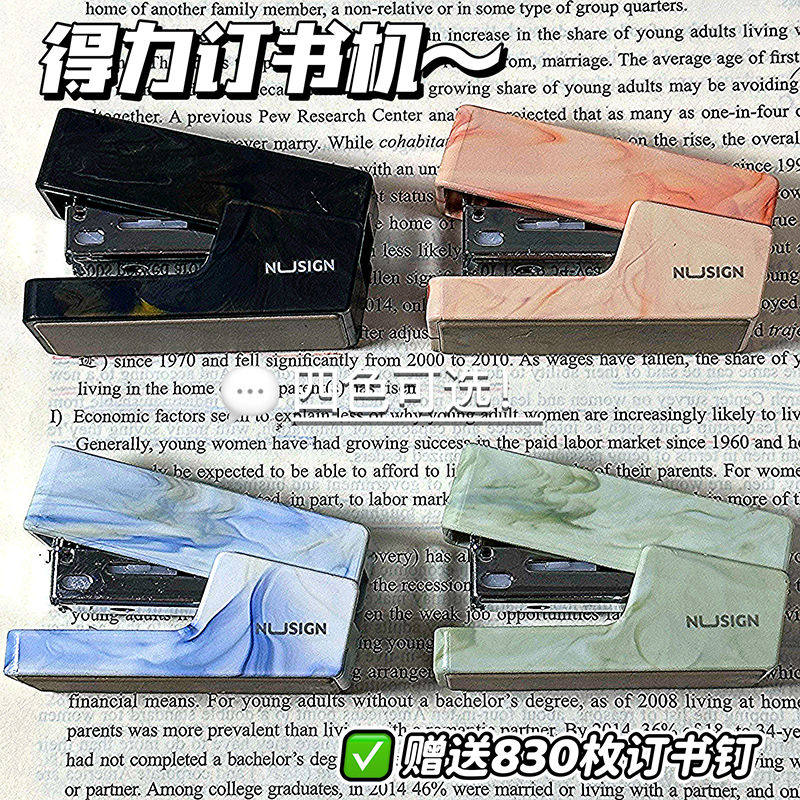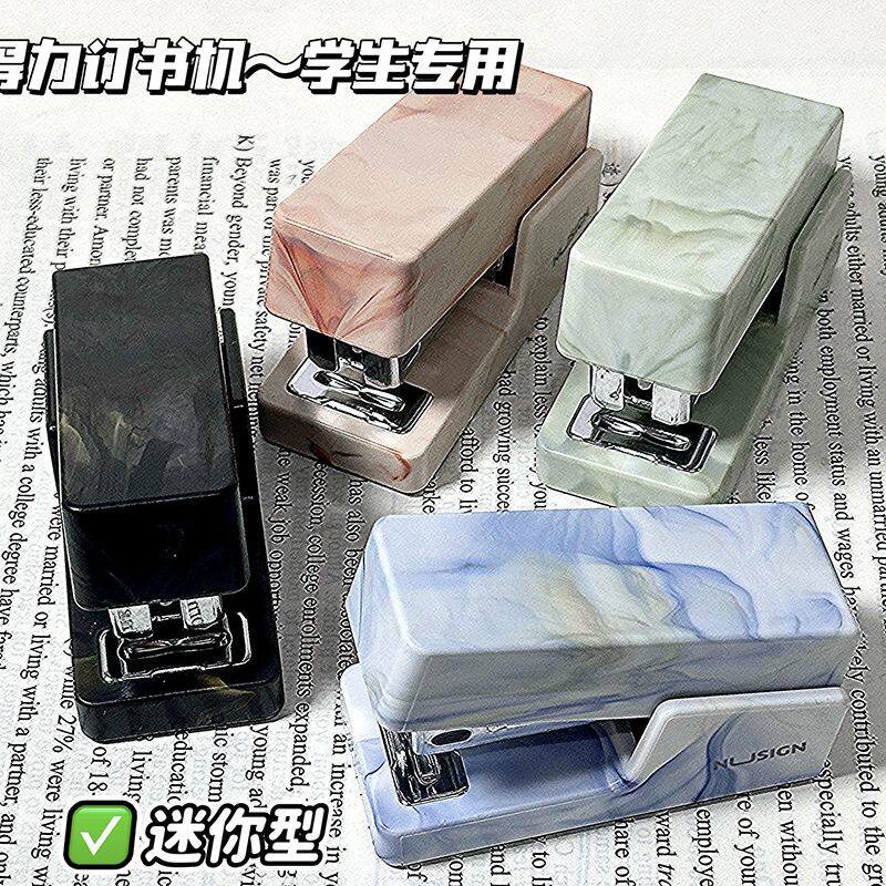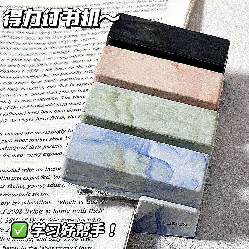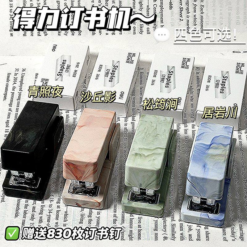📚 得力纽赛订书机自然流体迷你订书机学生用高颜值小号订书机起钉器便携式办公手握式订书器简约可爱小型装订机