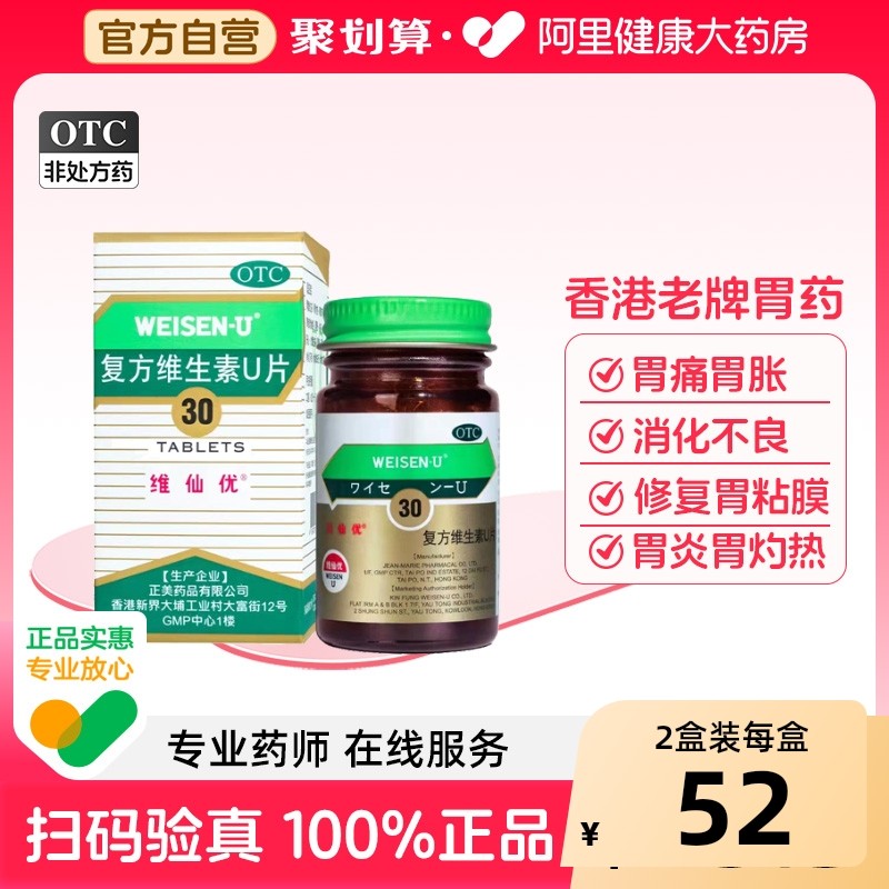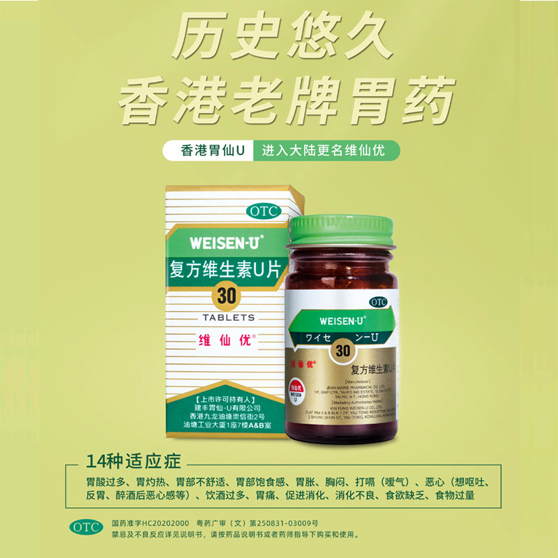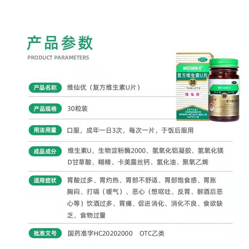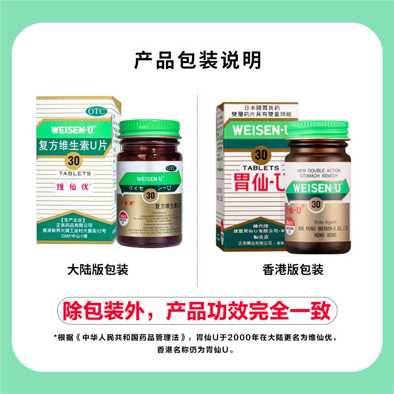 📚 胃仙U维仙优复方维生素U片30片日本胃药香港胃酸胃痛胃炎消化不良
