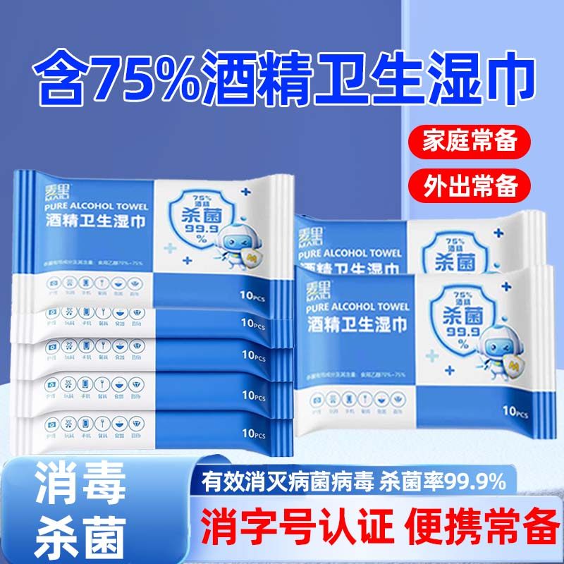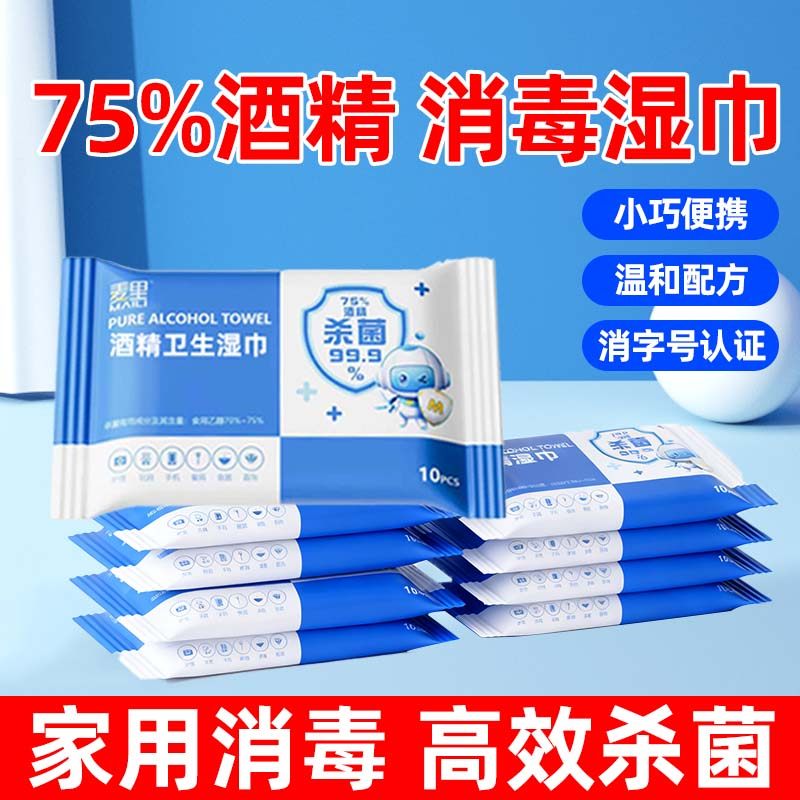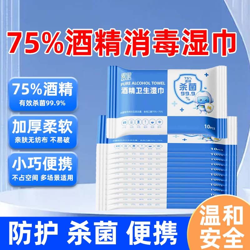 📚 麦里75%酒精湿巾消毒湿纸巾成人学生小包家用外出携带