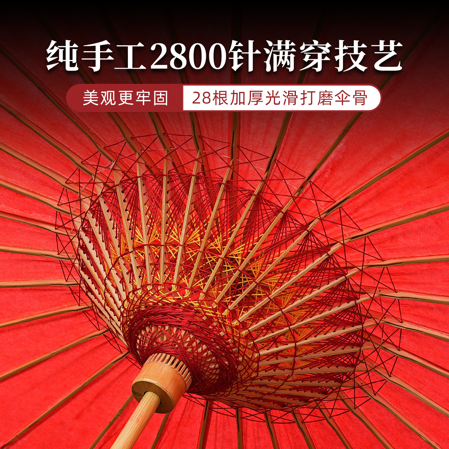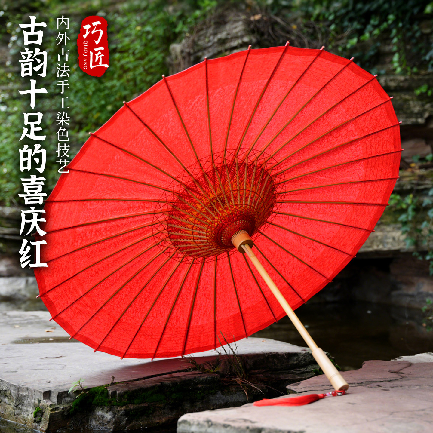 📚 巧匠红色油纸伞古风红伞非遗手工结婚用古法染色晴雨两用无味婚伞