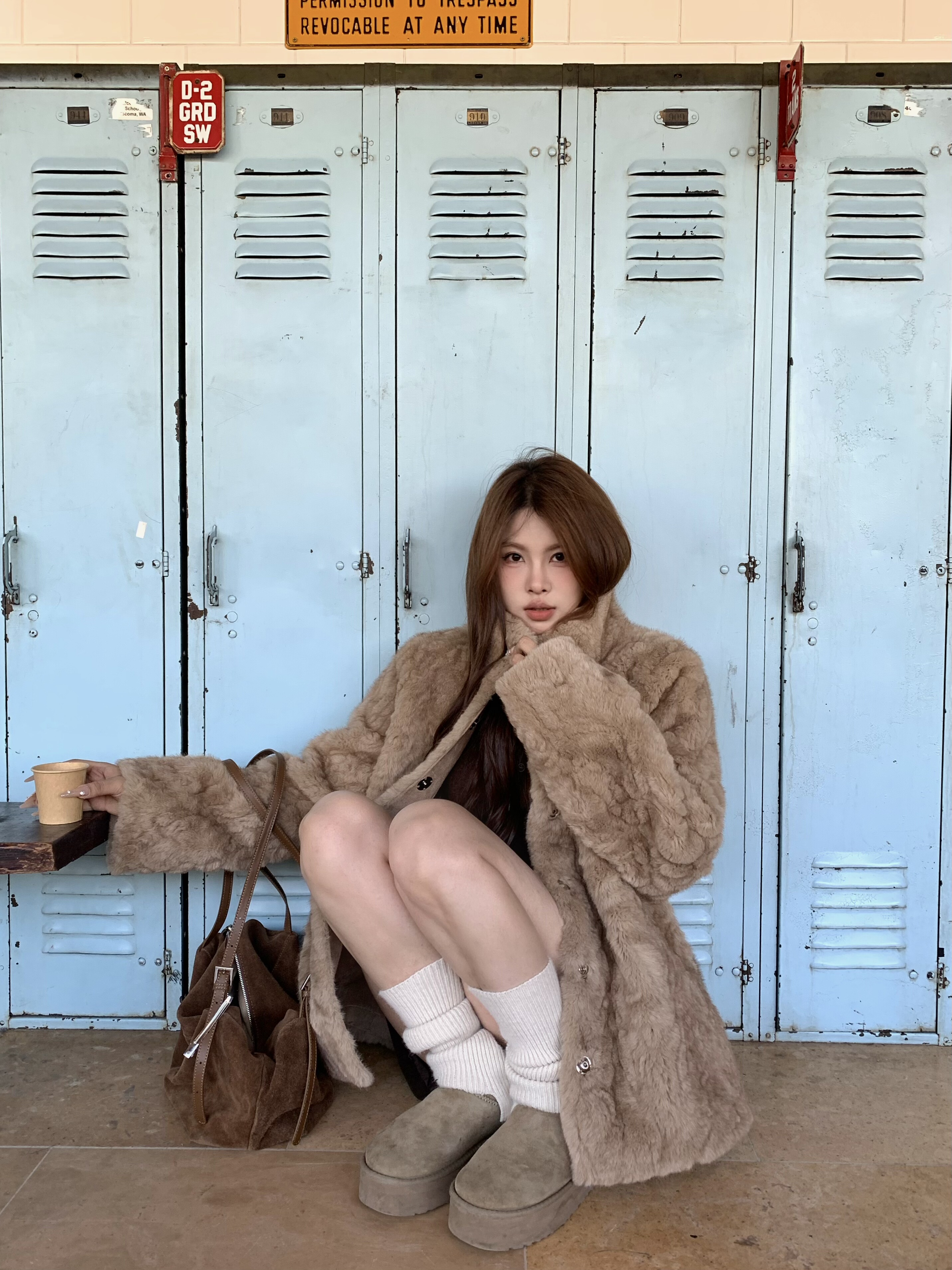 📚 宅宅athome//榛果奶糕 定染皮毛一体立领环保皮草中长款毛毛外套