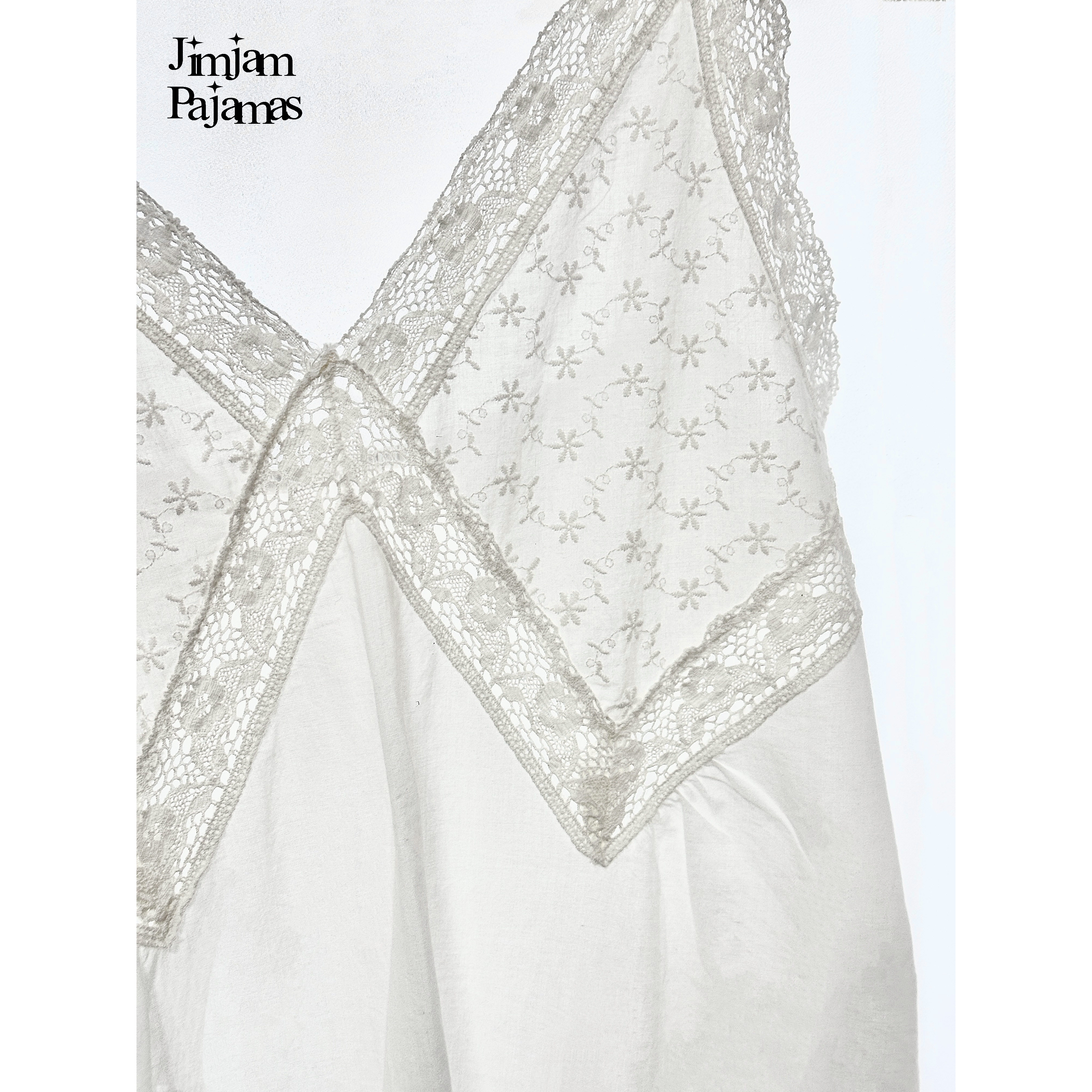 📚 Jimjam Pajamas“罗马假日”有机棉蕾丝拼接V领吊带法式睡裙睡衣