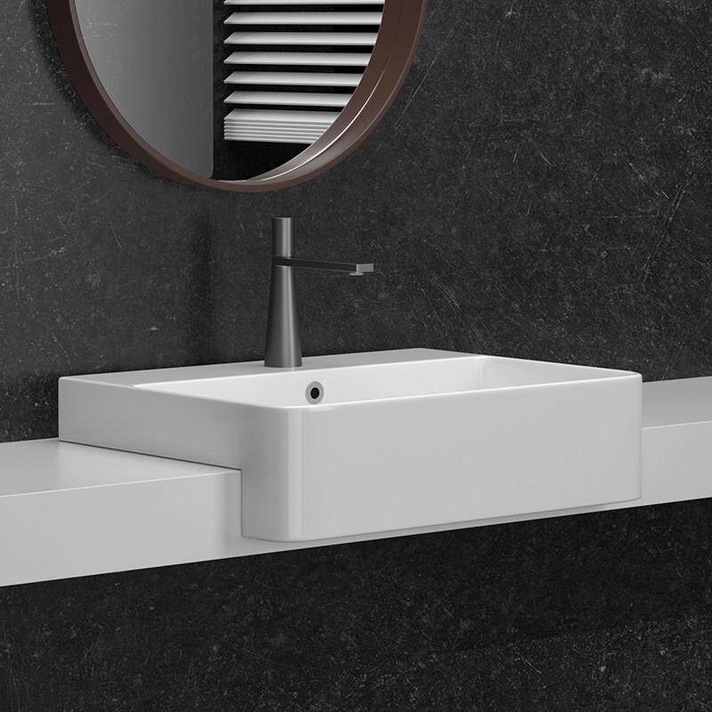 📚 北欧半嵌入式台盆方形半挂式台上盆洗脸盆洗面盆窄小半挂盆洗手盆
