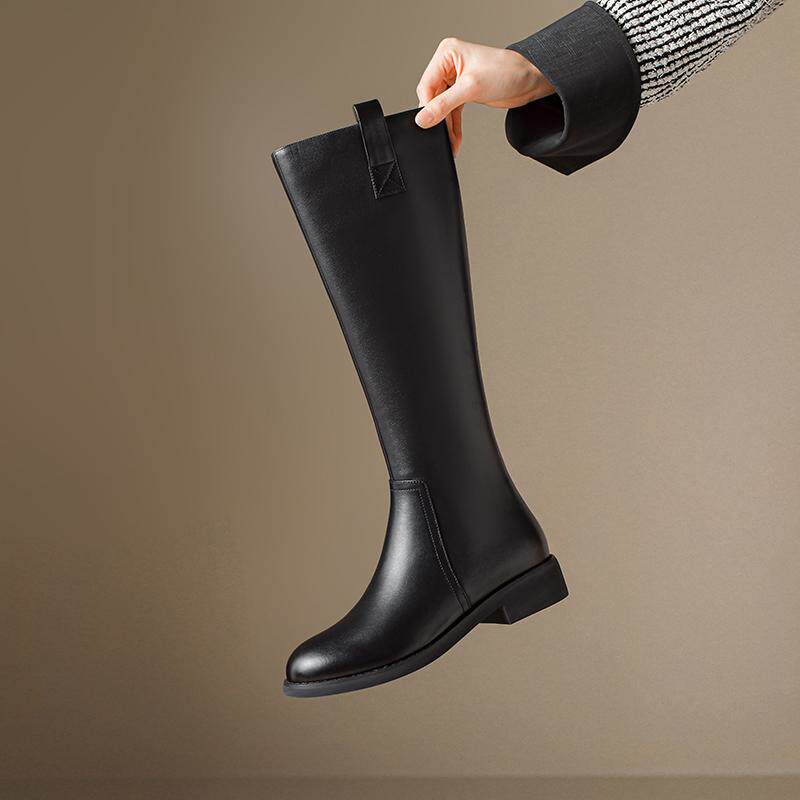 📚 【头层牛皮】经典秋冬款女低跟长筒靴加绒柔软舒适骑士靴大码女靴
