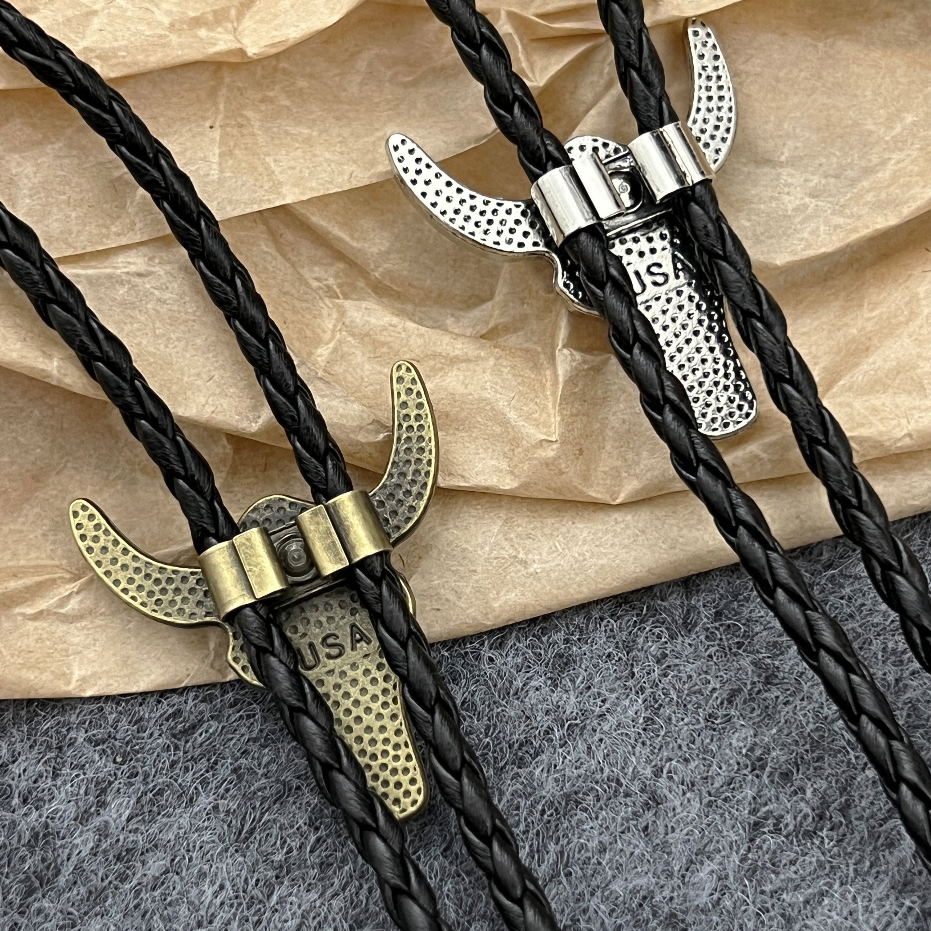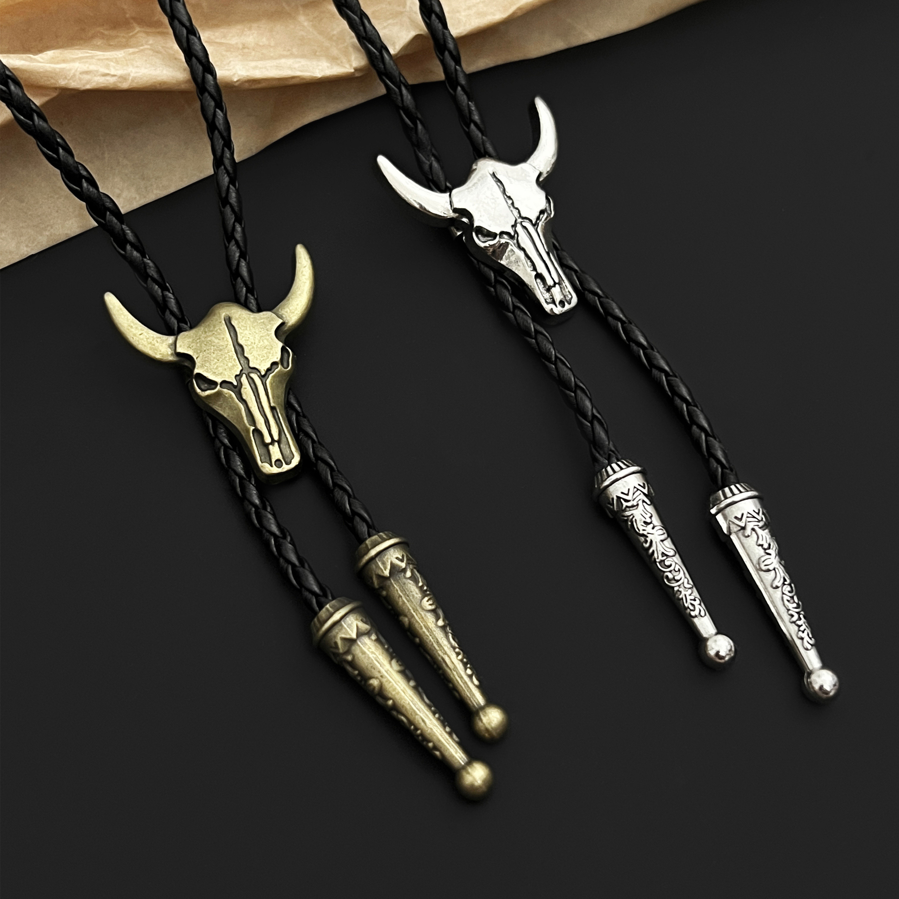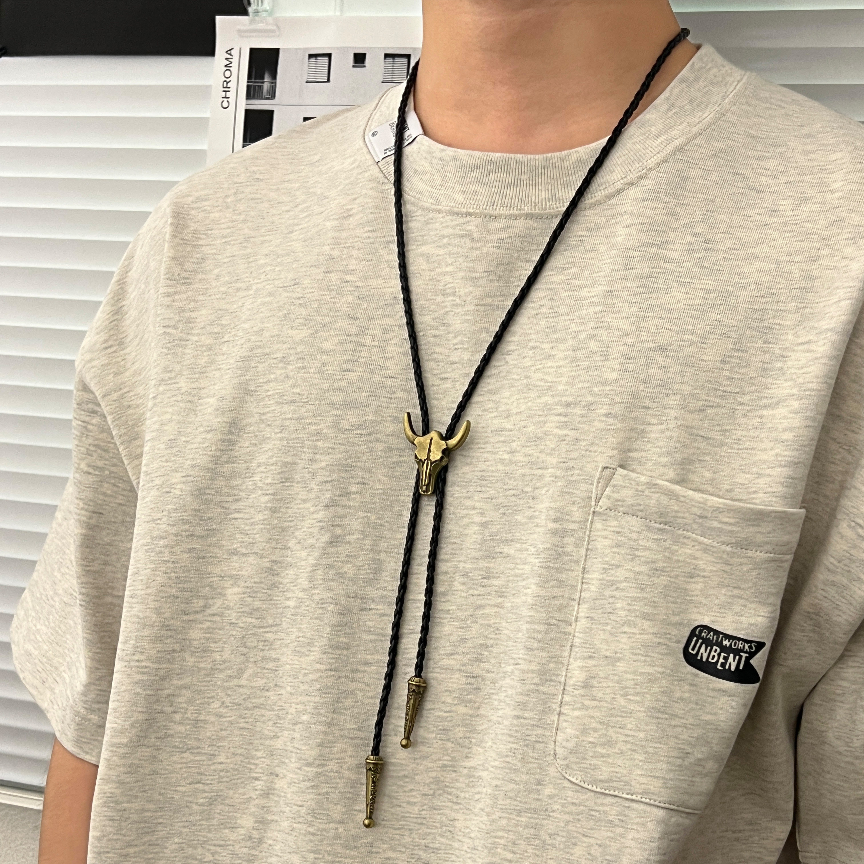 📚 美式西部牛头骨皮绳项链男复古个性小众牛仔古着Vintage领带配饰