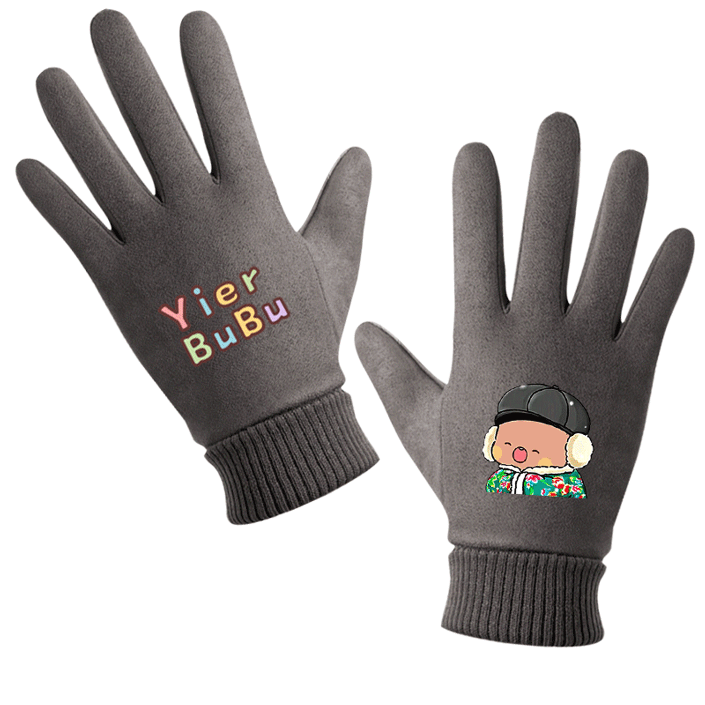 📚 一二和布布动漫周边情侣可定制保暖骑行手套卡通印花卡通可爱男女
