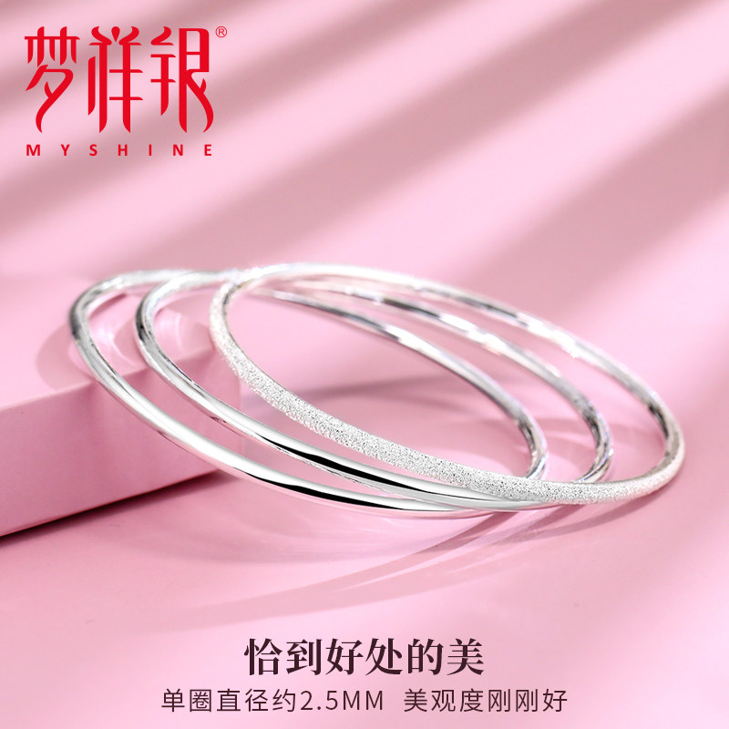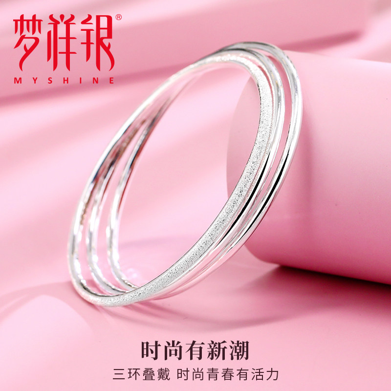📚 梦祥银三生三世足银手镯女年轻款三连环银镯子 送女友520礼物