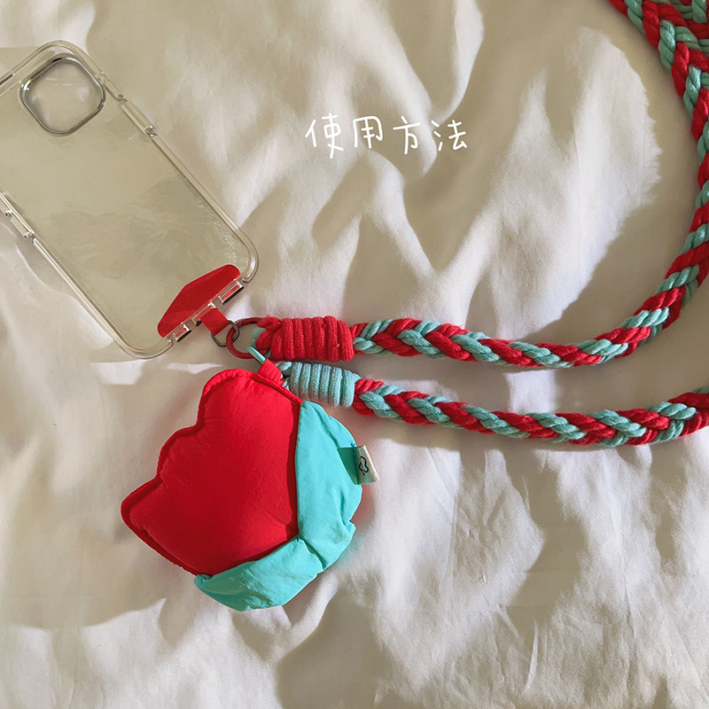 📚 潮款小清新收纳胖胖郁金香花朵学生包挂件尼龙编织挂绳适用于手机壳百搭ins女款户外防丢斜跨ccd便携侧身挂脖