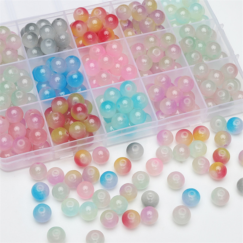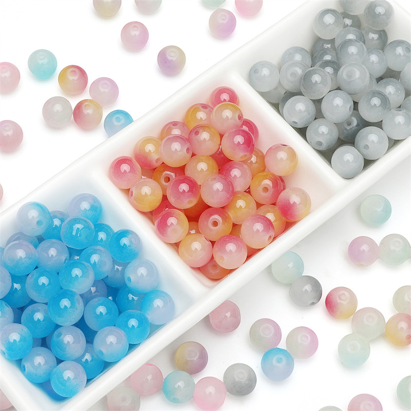 📚 玻璃双拼果冻圆珠串珠DIY手工制作古风发簪项链手链耳饰材料配件