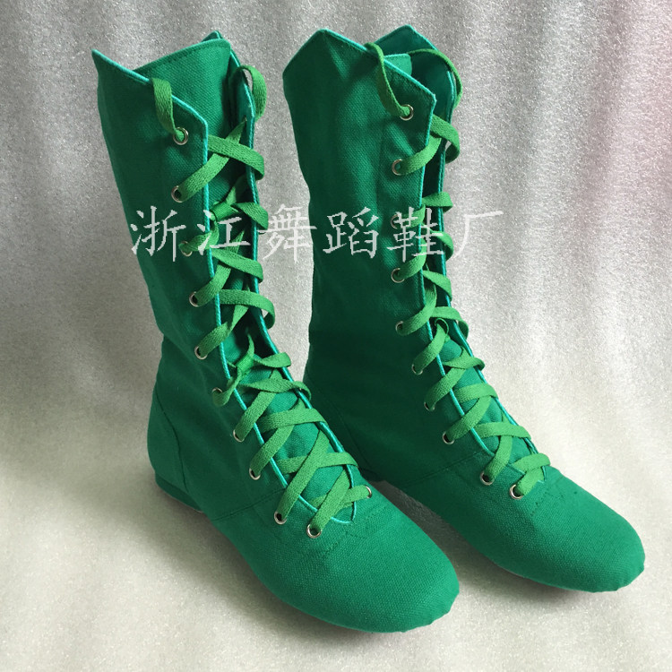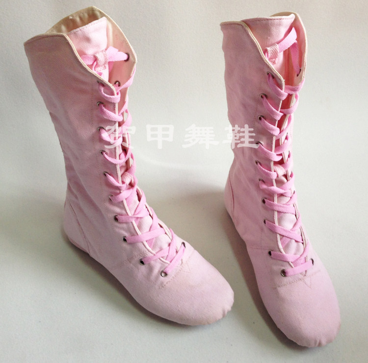 📚 带跟高帮爵士鞋帆布软底舞蹈鞋高跟长筒爵士鞋高筒民族现代舞鞋