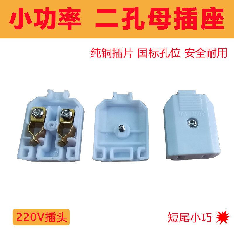 📚 220V家用二脚三孔可拆转动插座铜公母插头对接监控AC电源带线两角
