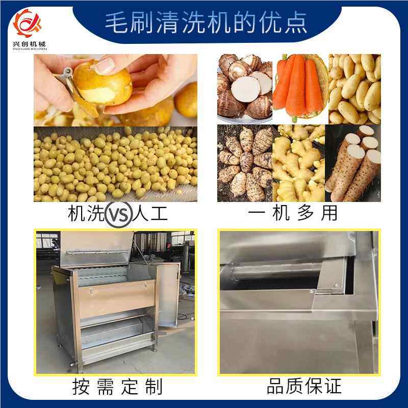 📚 商用鲜全852动土豆去皮清洗机海根蔬菜清洗机茎生自姜香芋毛刷清