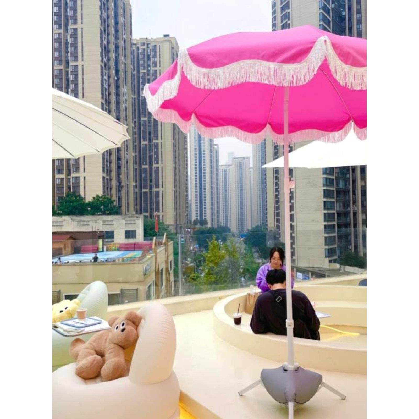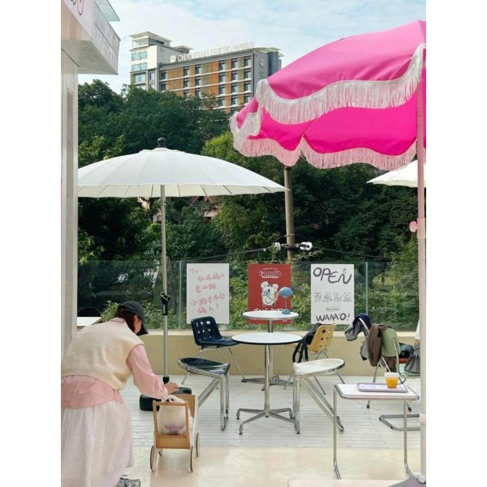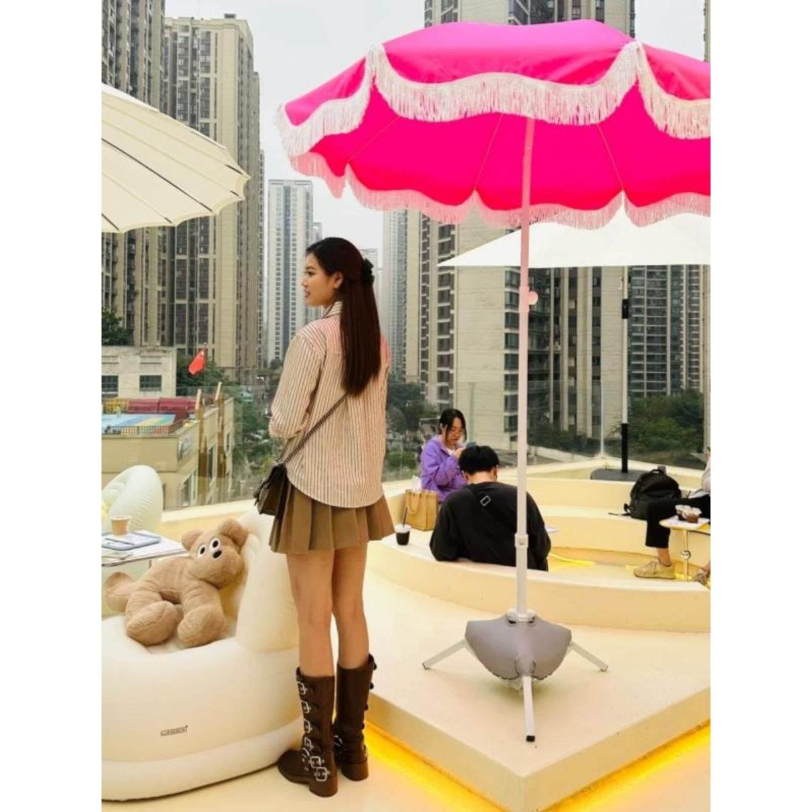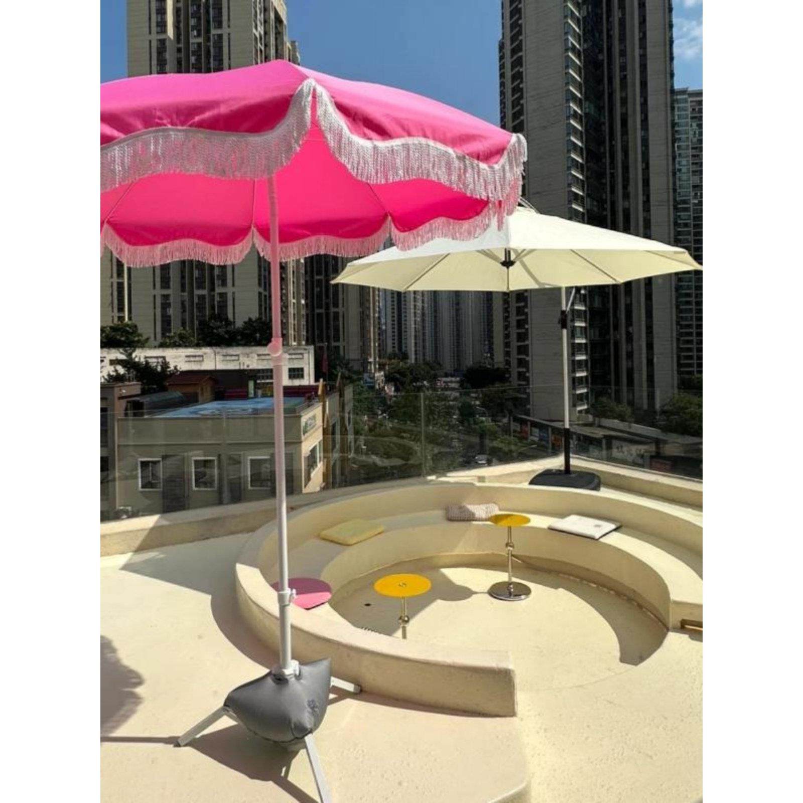 📚 粉色沙滩遮阳伞白色户外道具太阳伞二折伞花园大沙滩伞促销广告伞