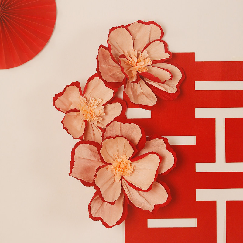 📚 网红婚房布置皱纹纸立体花纸花新房卧室褶皱花背景墙婚礼装饰