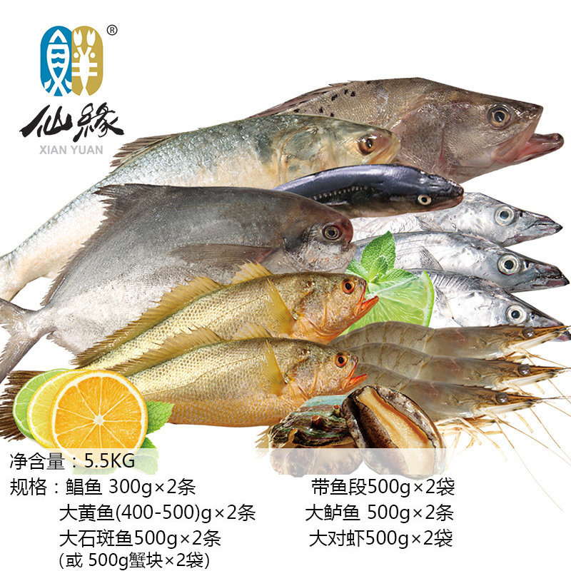 📚 如东洋口港特产仙缘海鲜大礼包鲳鱼黄鱼鲈鱼带鱼经典组合水产礼盒