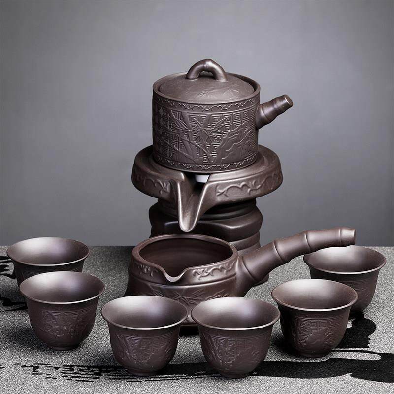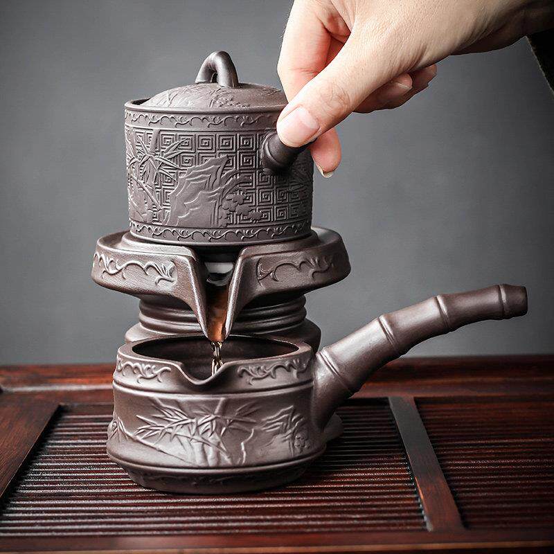 📚 紫砂懒人自动茶具套组家用客厅功夫茶杯泡茶壶茶盘小套石磨冲茶器