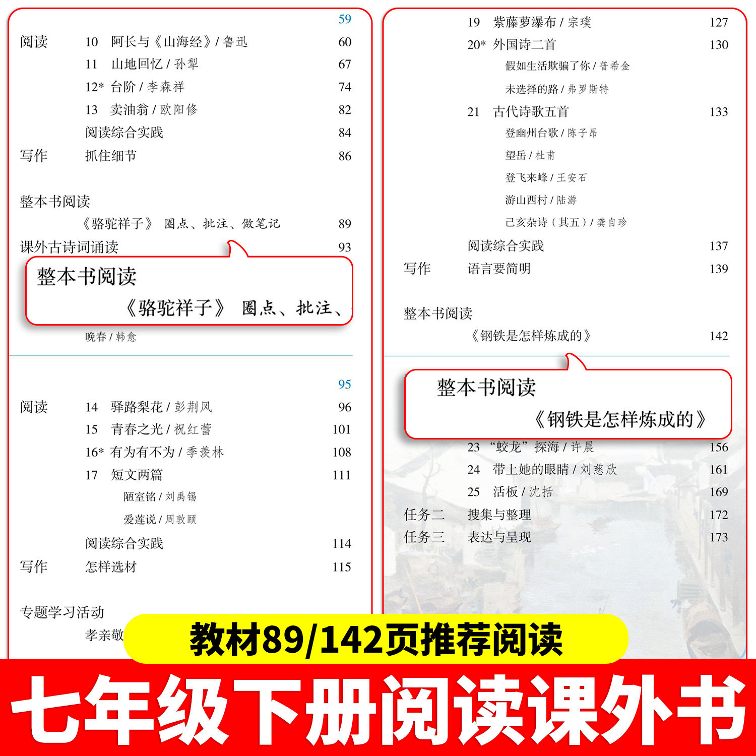 📚 【现货速发】骆驼祥子和钢铁是怎样炼成的七年级下册必读课外书原著正版完整版课外书初中初一7下上册课外阅读书籍名著初中版配套