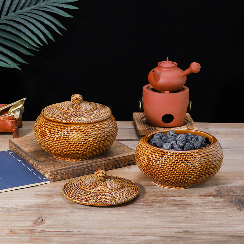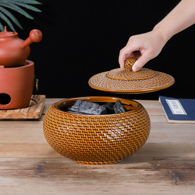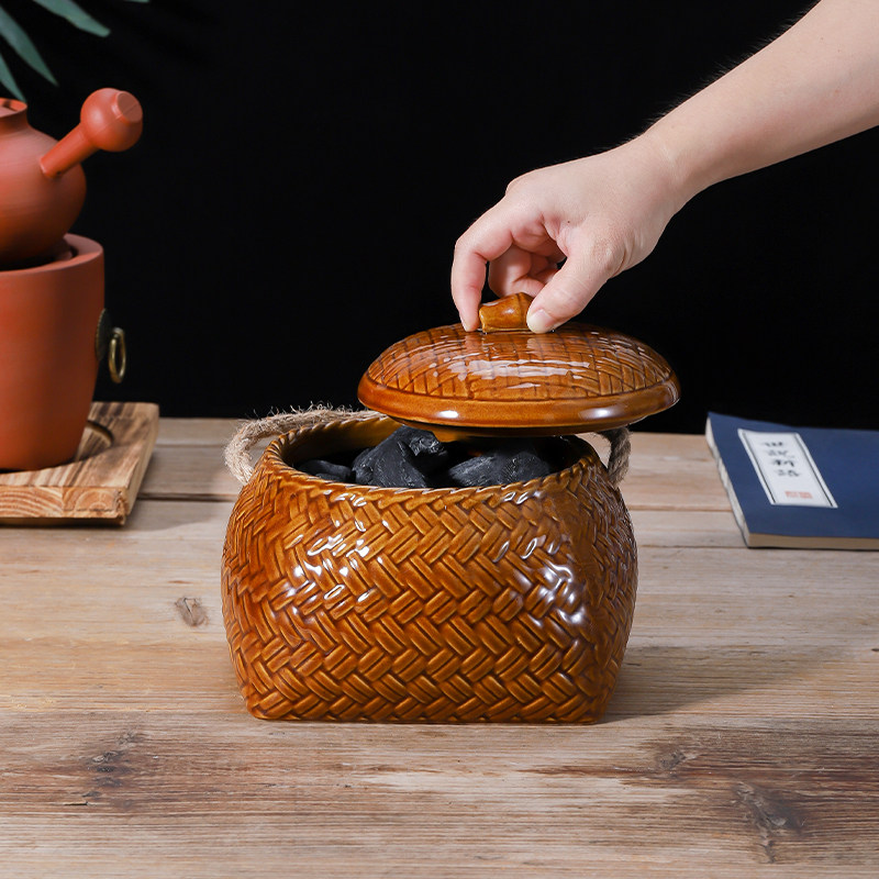 📚 围炉煮茶陶瓷炭钵家用炭篓煮茶烧烤炭收纳盒户外便携熄炭控火炭盆