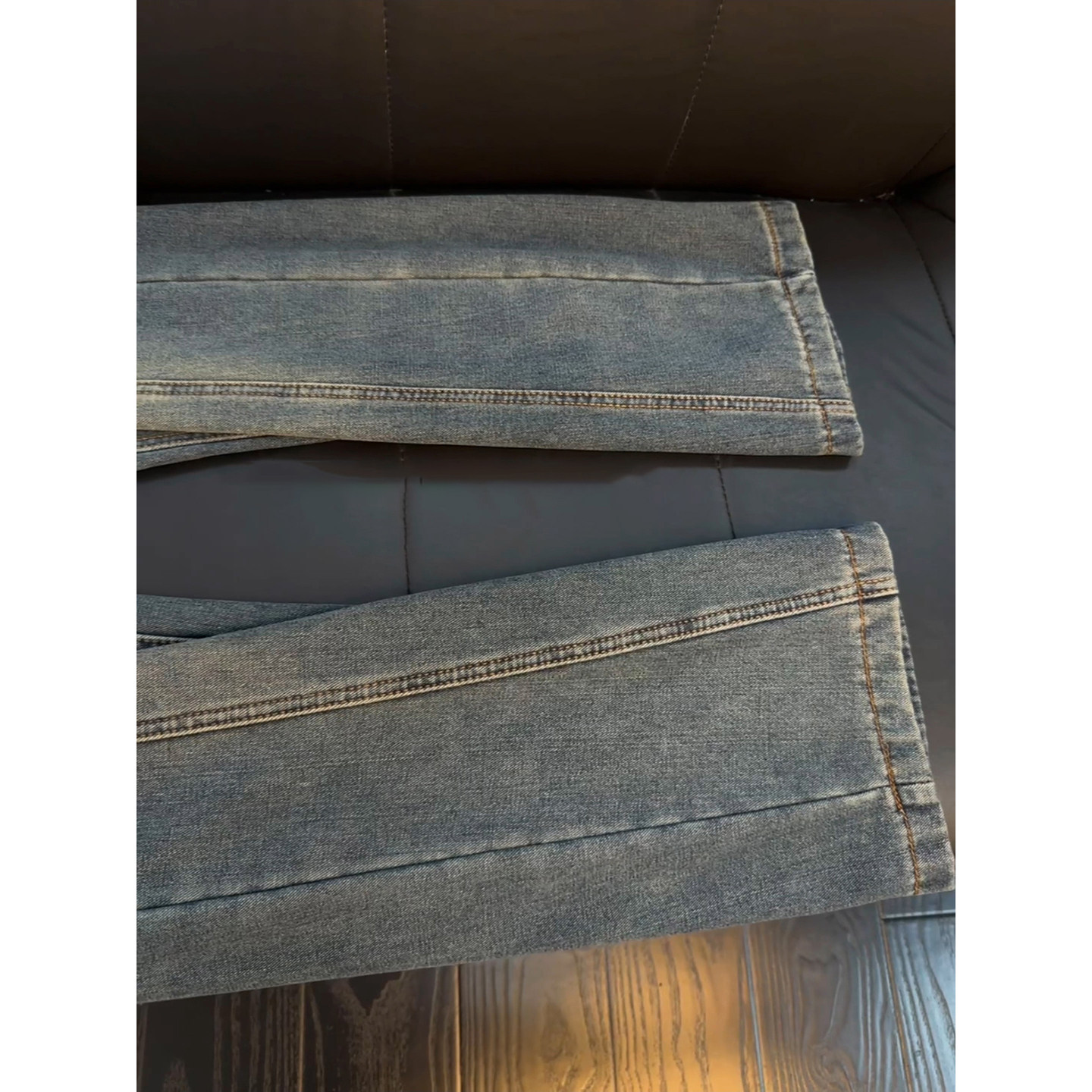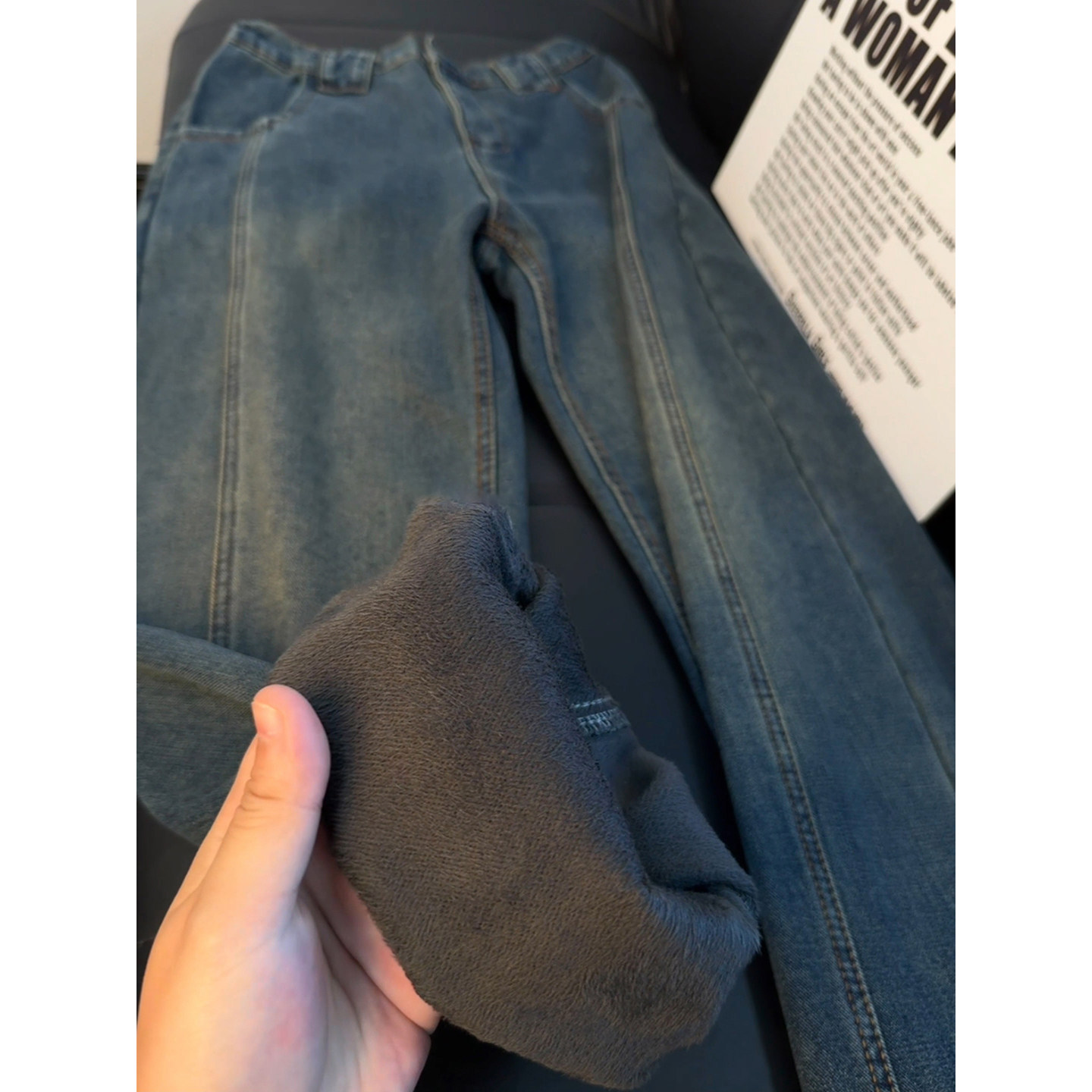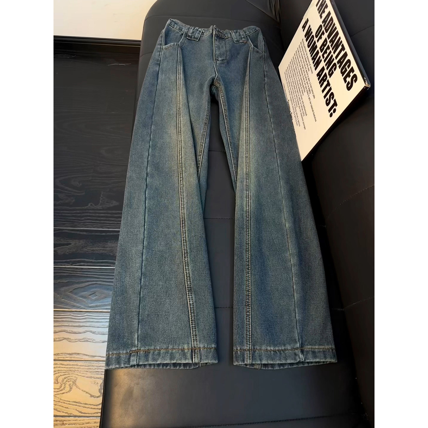📚 复古蓝加绒微喇牛仔裤男款冬季美式设计感裤子显瘦弯刀直筒阔腿裤