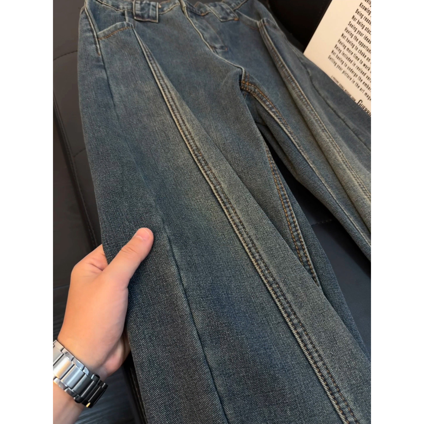 38¥ CZ057 CQ2XURzq8nx¥ https://m.tb.cn/h.7H5dTIo 复古蓝加绒微喇牛仔裤男款冬季美式设计感裤子显瘦弯刀直筒阔腿裤 --------------------- 【原售价】106元 【现售价】68元。