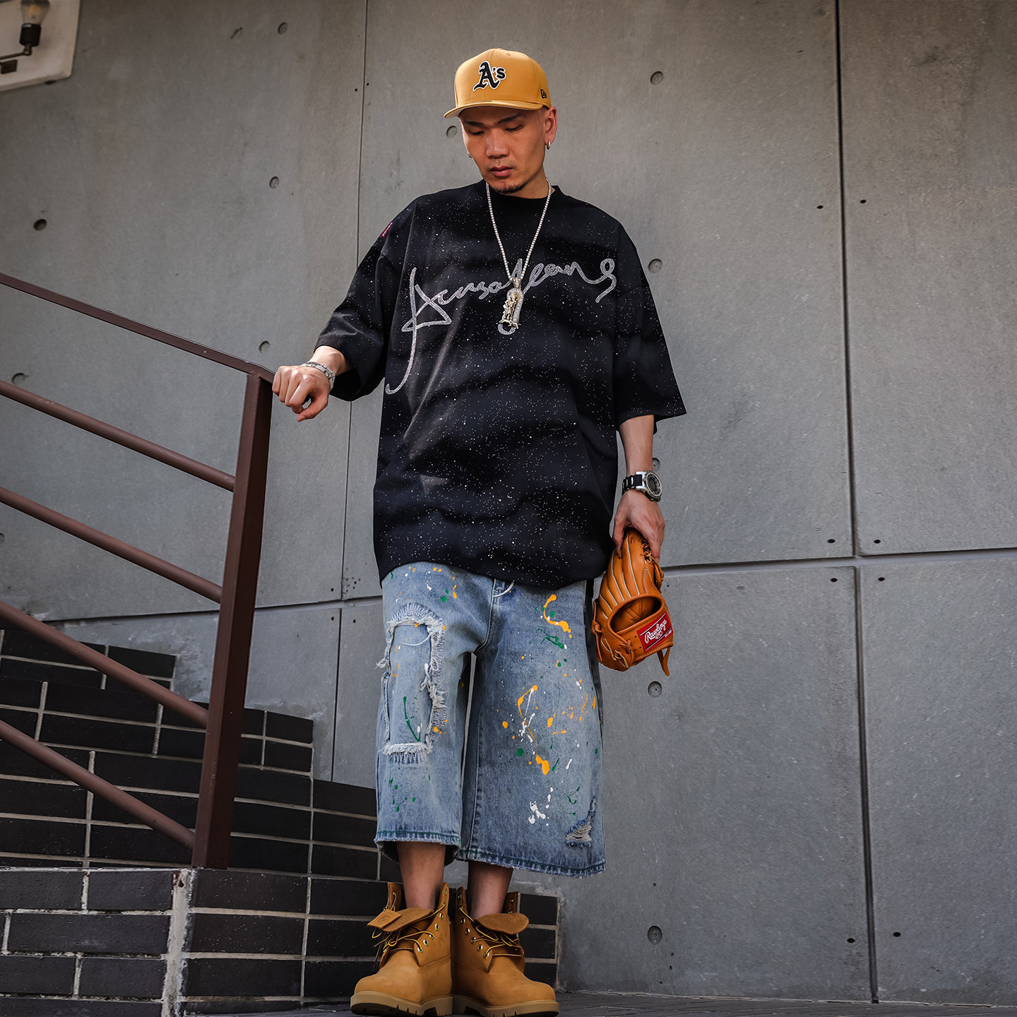 📚 ACUSA烫钻logo布鲁克林字体夏季短袖T恤男女装情侣款美式宽松上衣