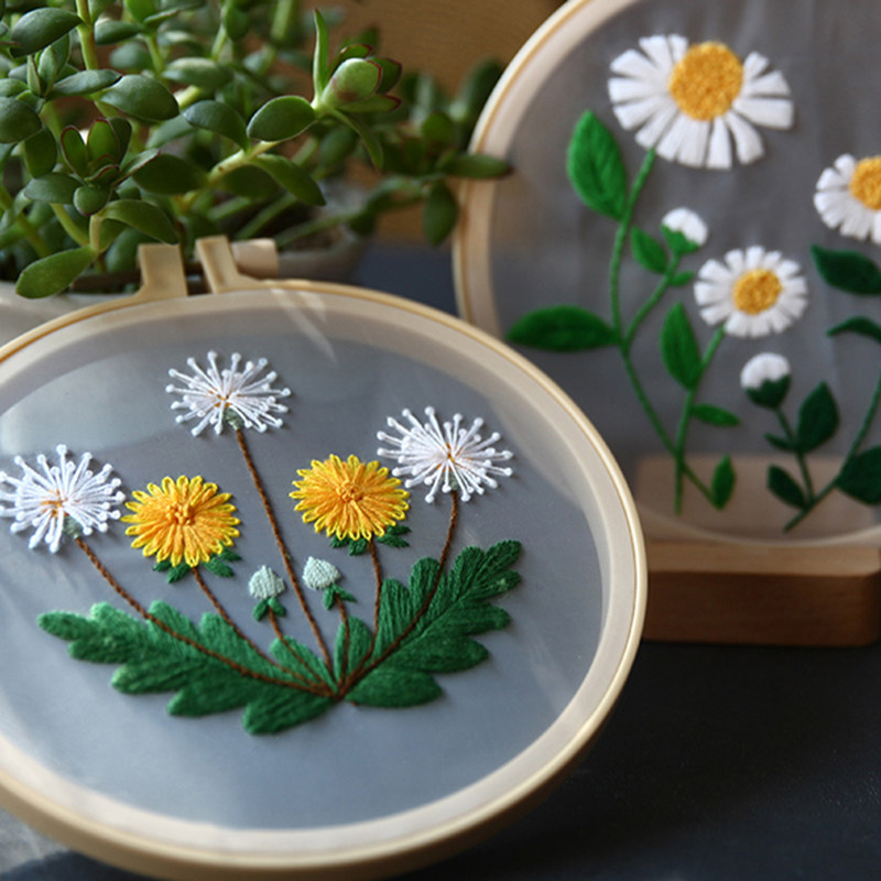📚 刺绣diy手工网纱挂画材料包欧式透明纱法绣针线套装欧根纱双面绣