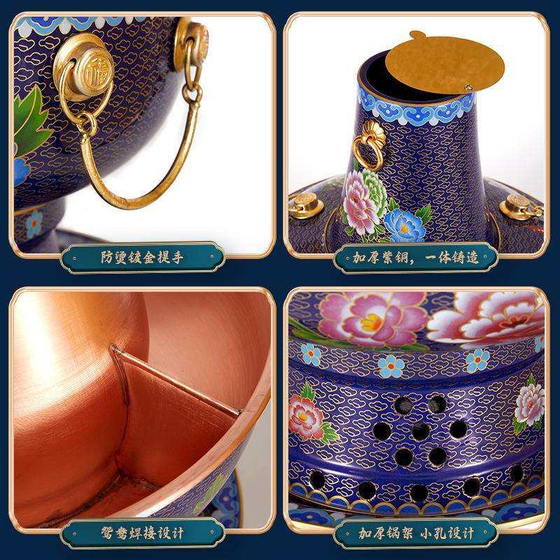 📚 铜火锅纯铜老式铜炉加厚木炭碳鸳鸯家用纯紫铜北京涮羊肉铜锅商用
