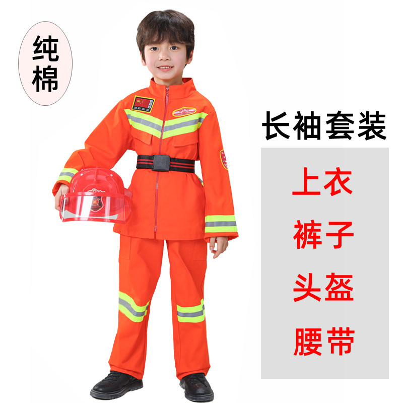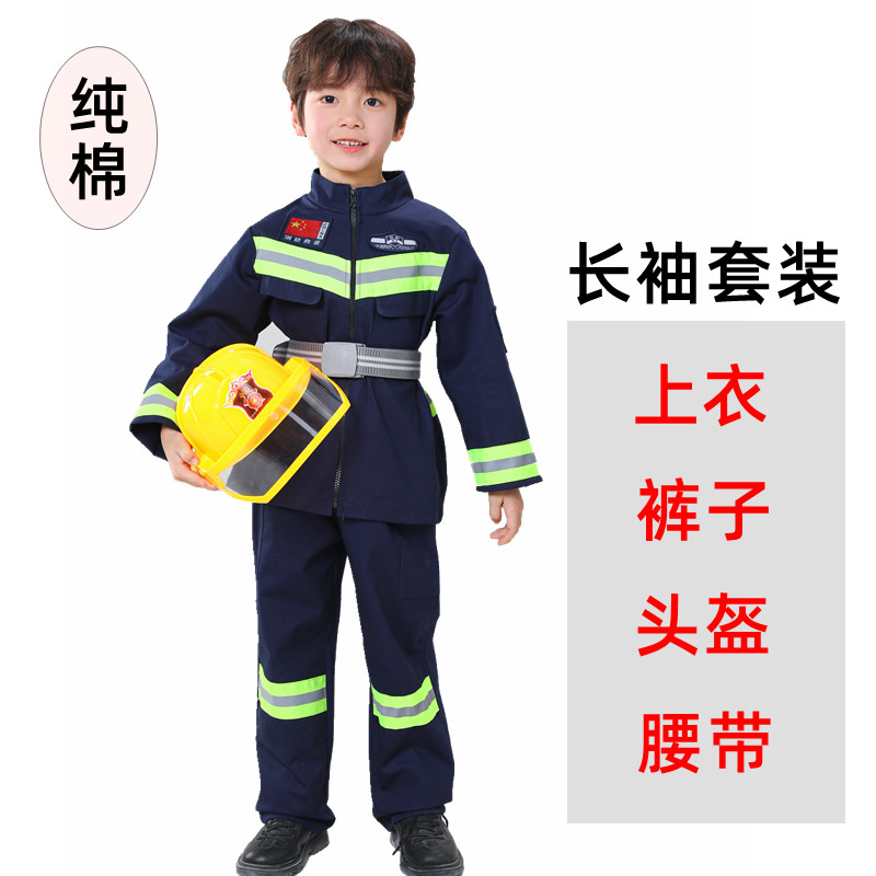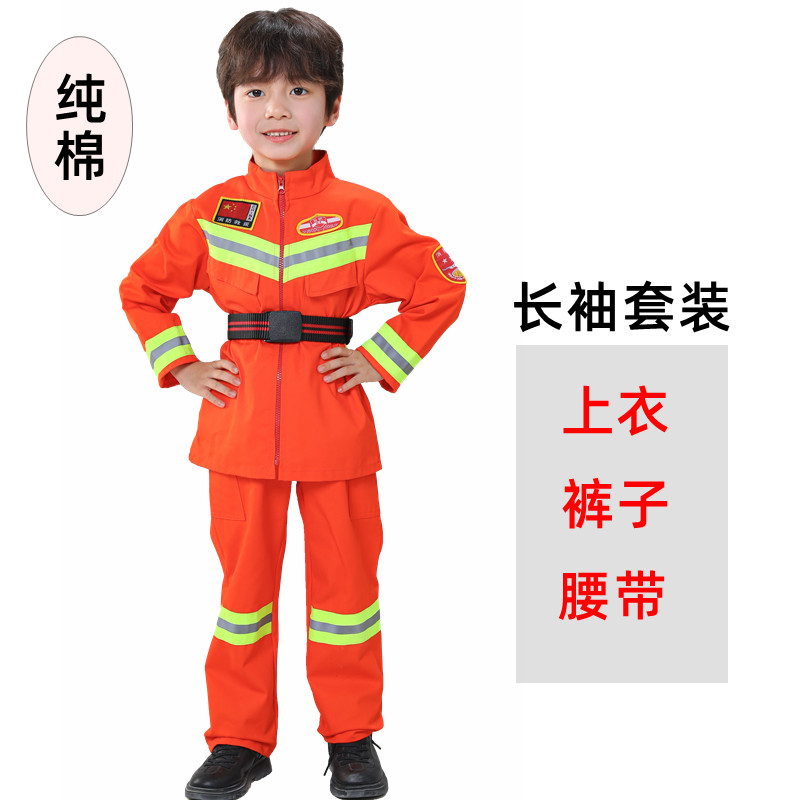 📚 2025新款高档纯棉儿童消防员服装角色扮演幼儿园消防表演出服套装